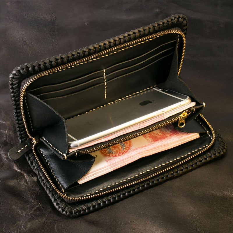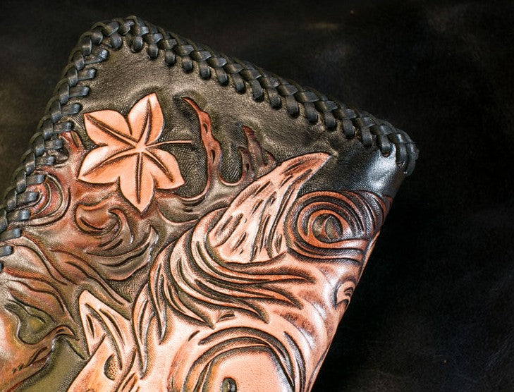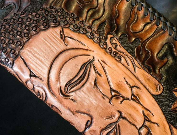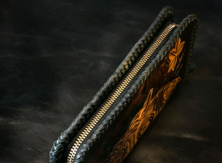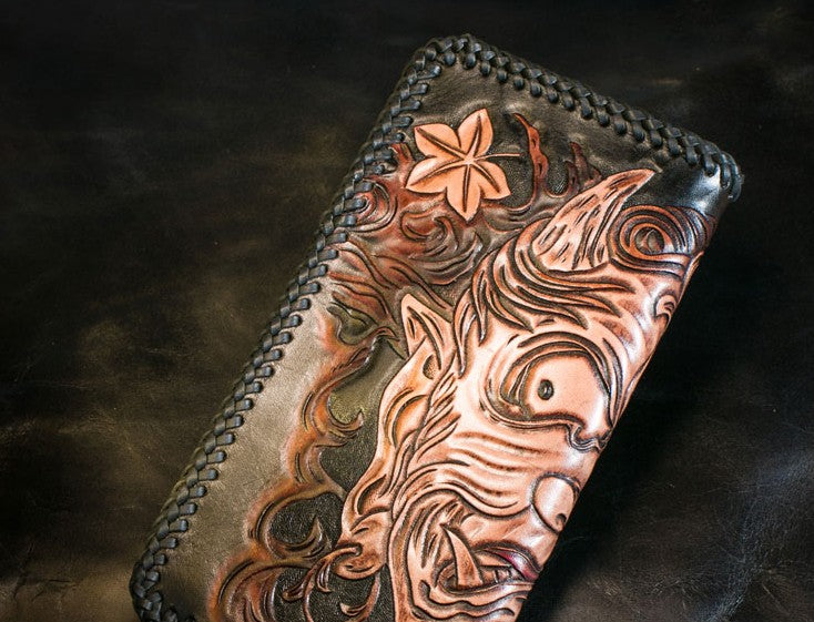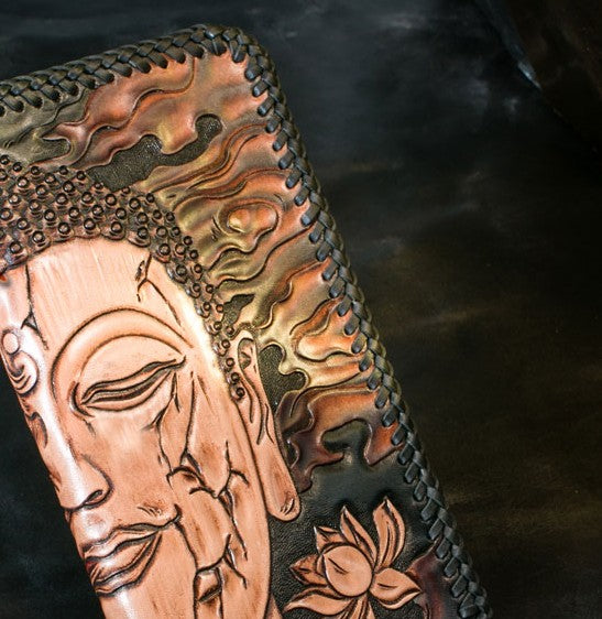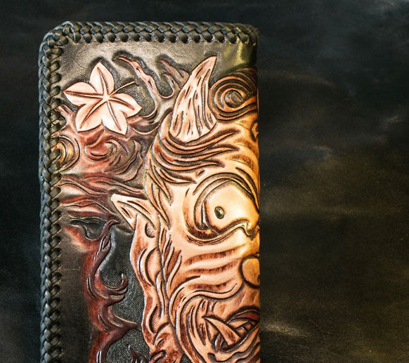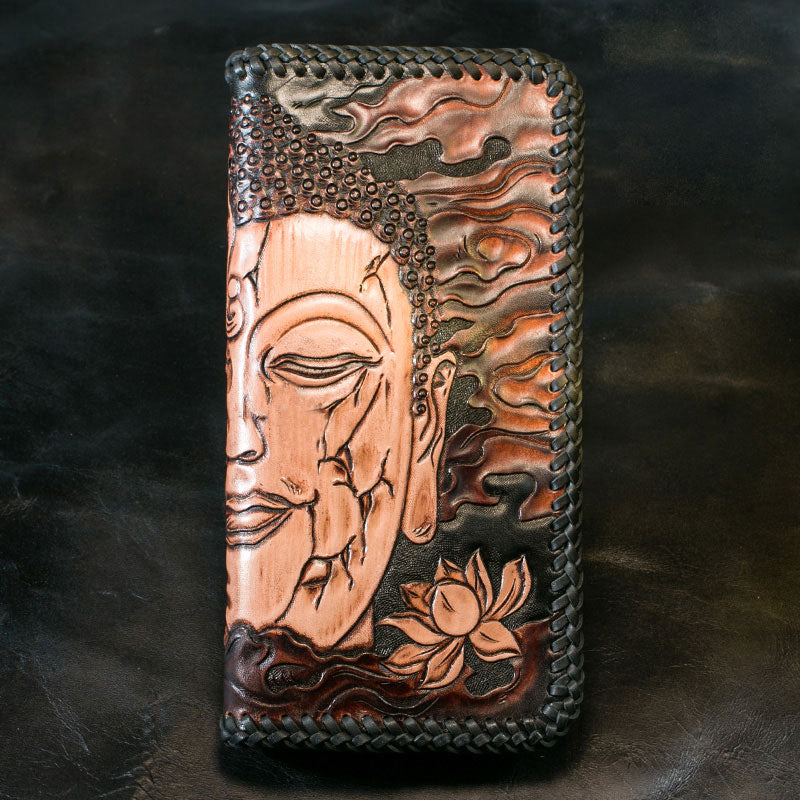 Design: Handmade Leather Mens Clutch Wallet Tooled Cool Ganesha Wallet Long Zipper Wallets for Men