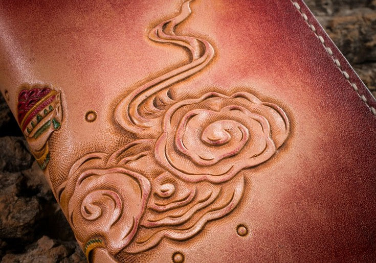 Design: Handmade Leather Mens Clutch Wallet Tooled Cool Ganesha Wallet Long Zipper Wallets for Men
