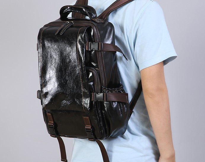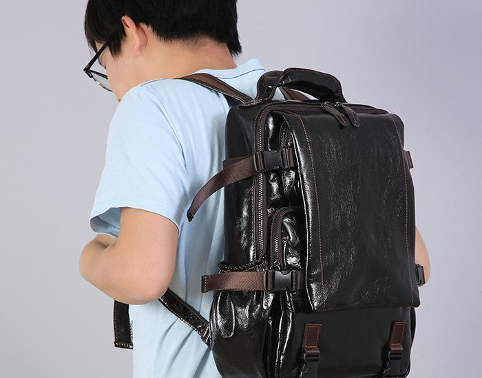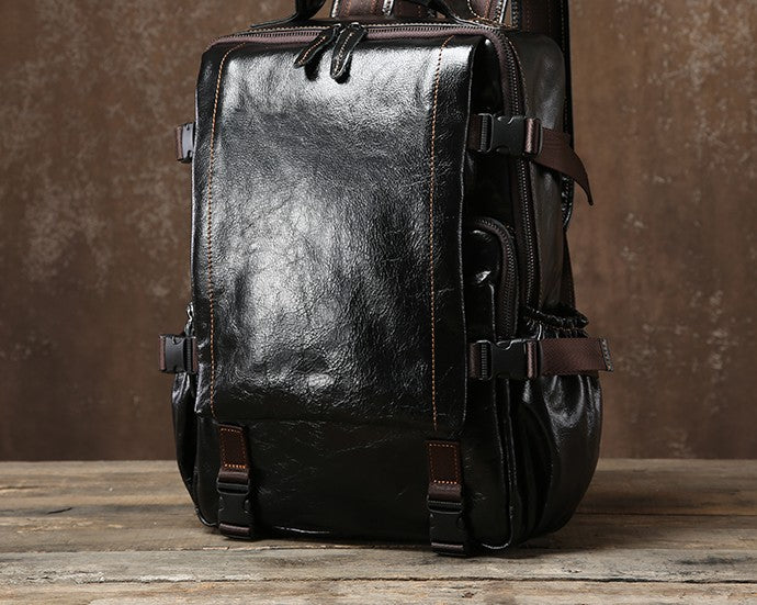 Design: Handmade Leather Mens Cool Backpack Large Travel Bag Hiking Bag for Men