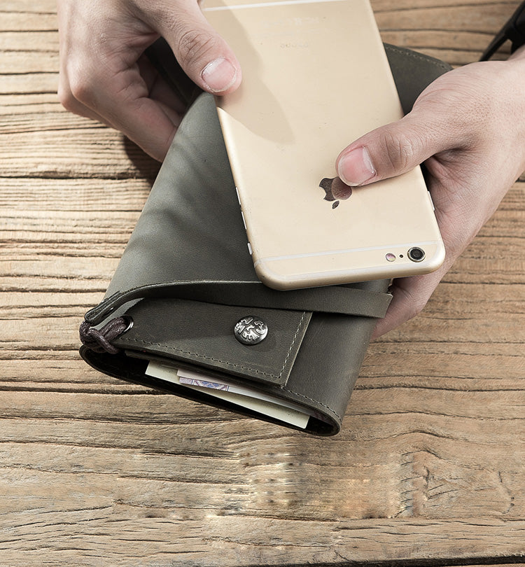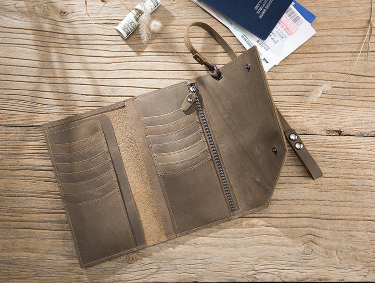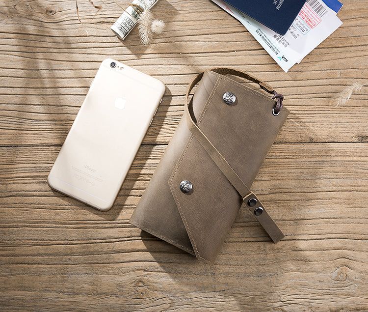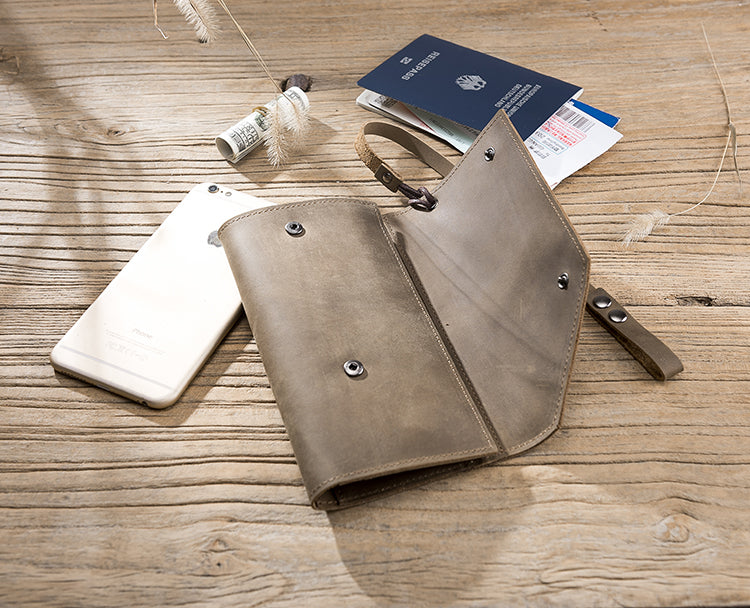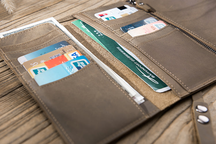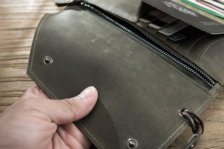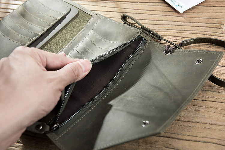 Style: Handmade Leather Mens Cool Long Chain Wallet Phone Biker Trucker Wristlet Wallet