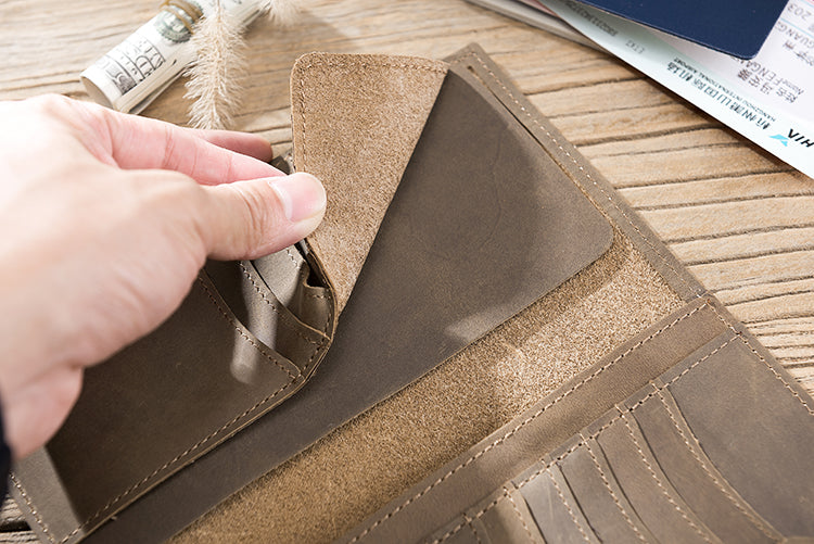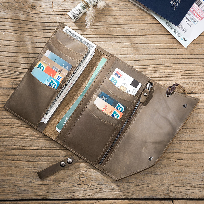 Slots: 2 full size bill slot, 12 card holders,1 zipper slot
