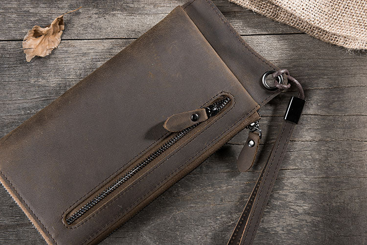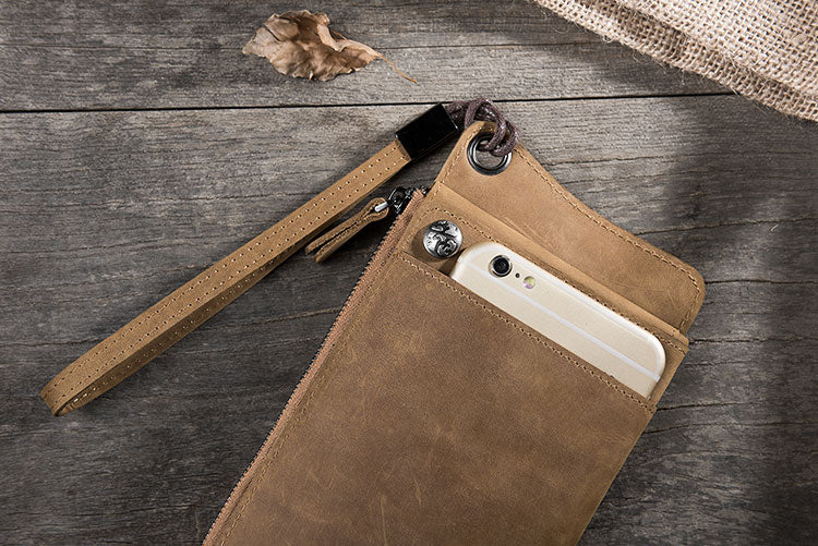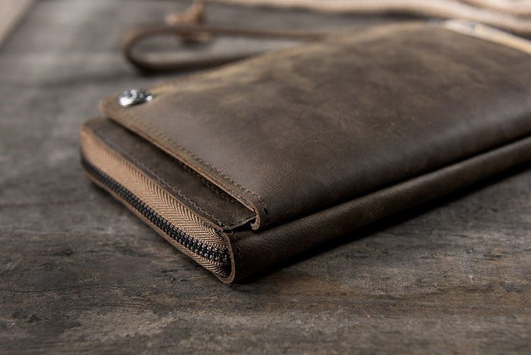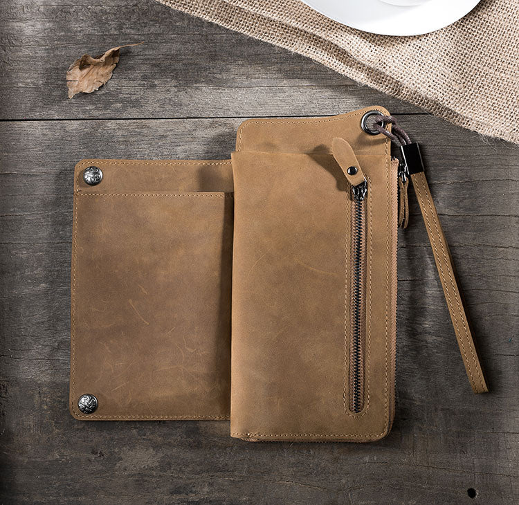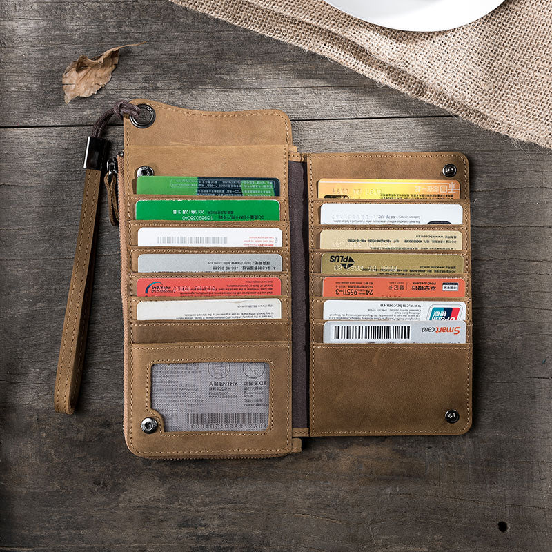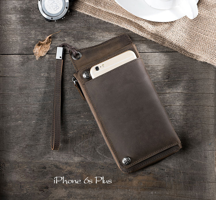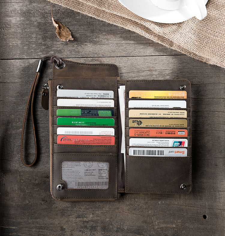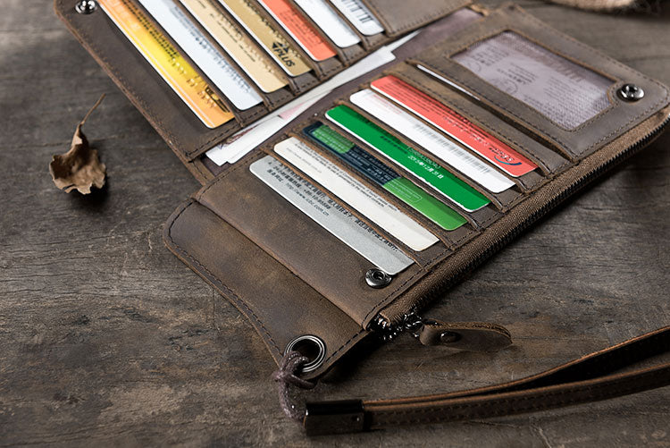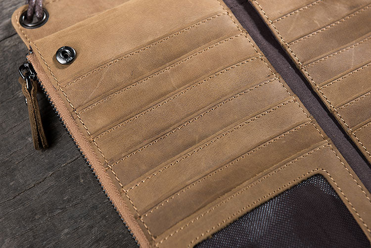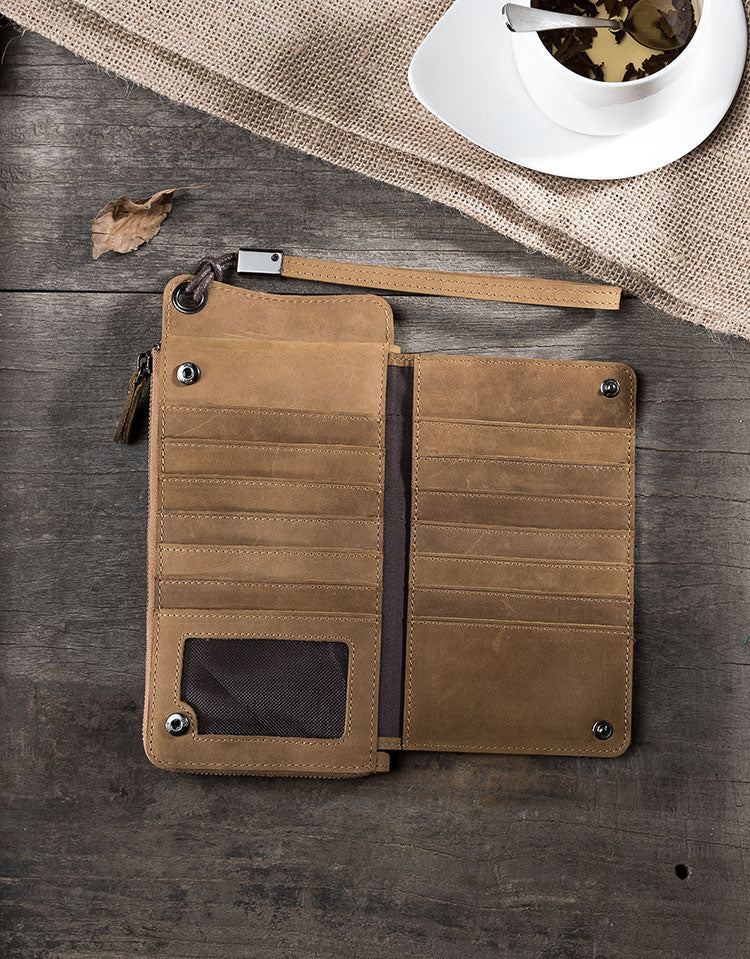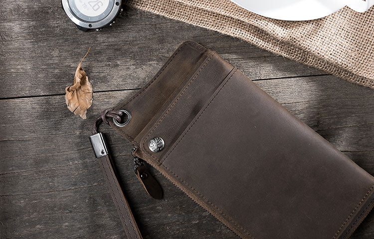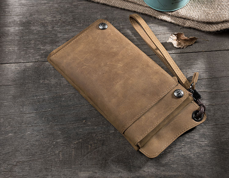 Style: Handmade Leather Mens Cool Long Chain Wallet Phone Biker Trucker Wristlet Wallet