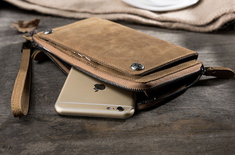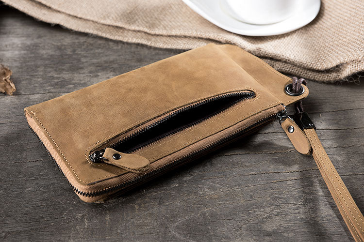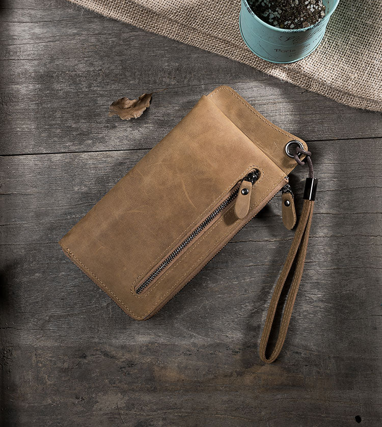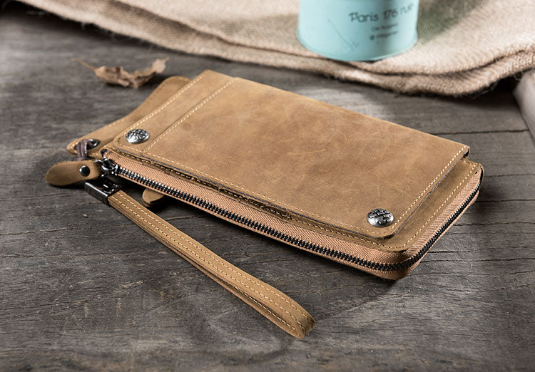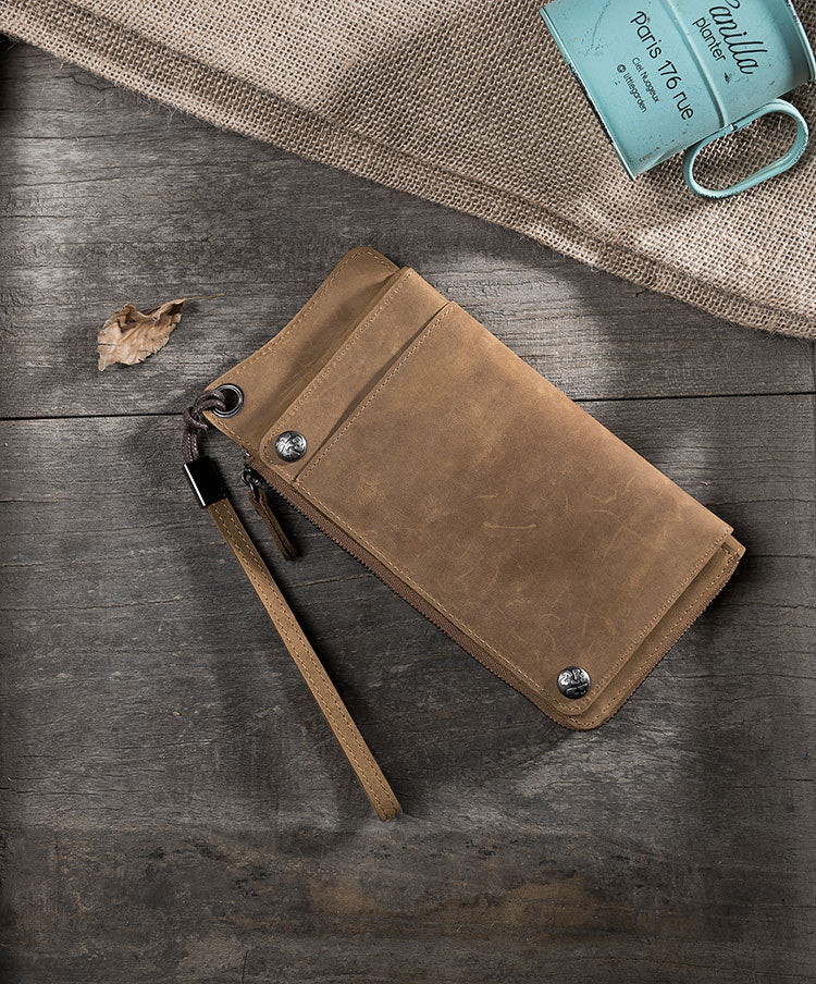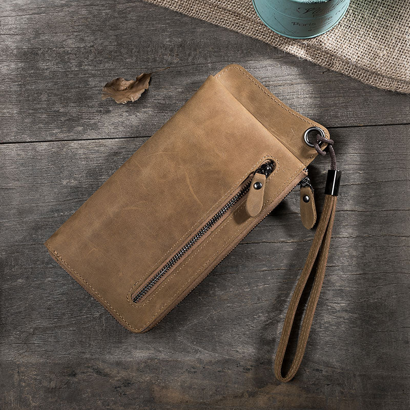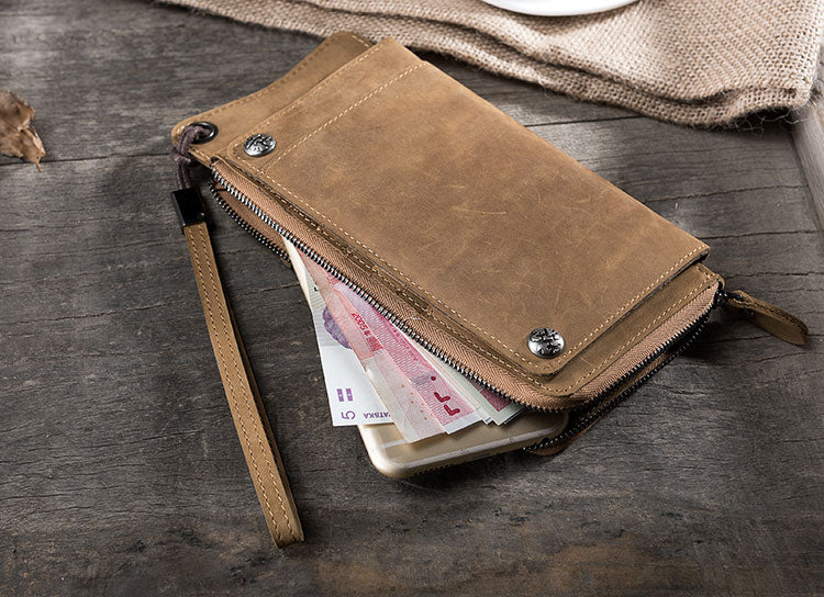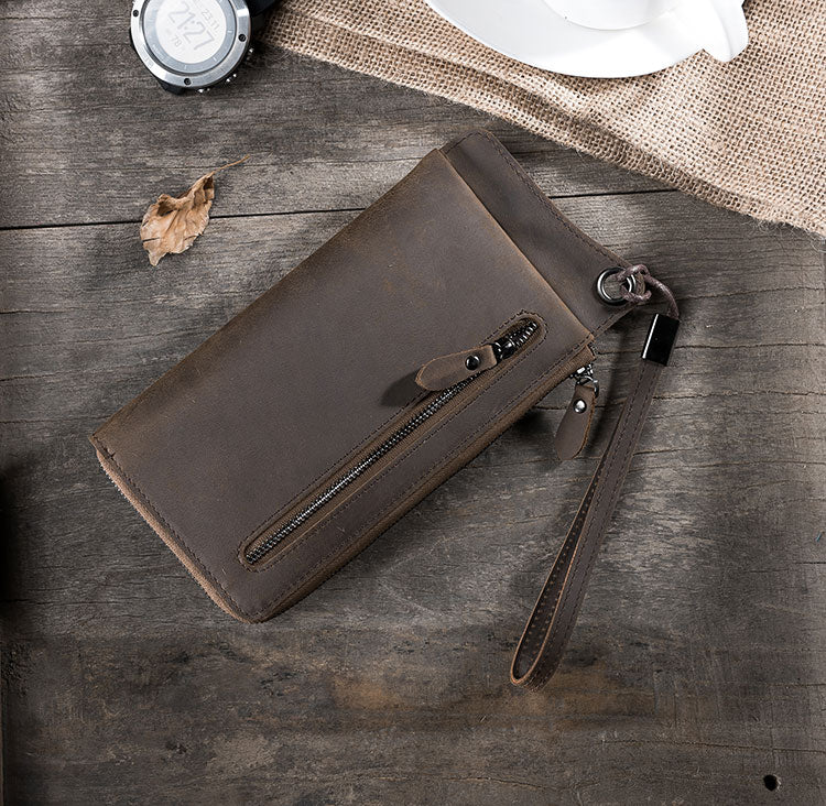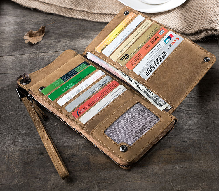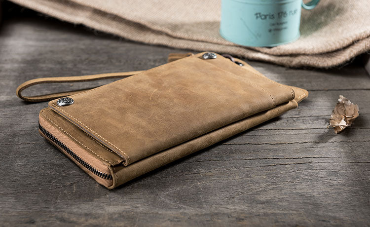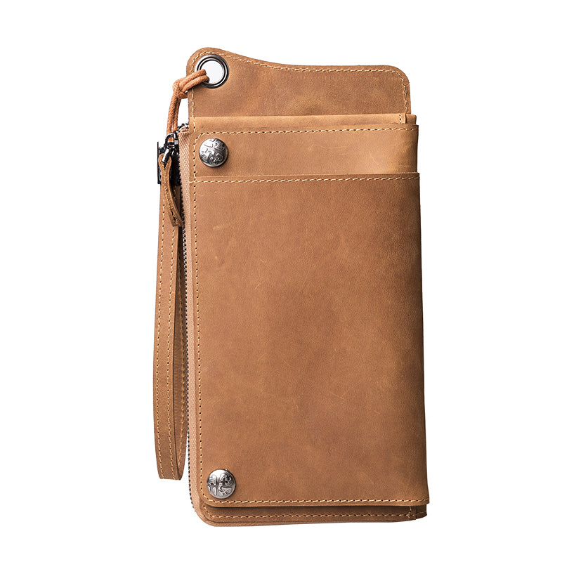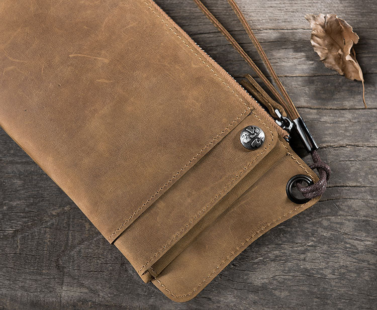 Style: Handmade Leather Mens Cool Long Chain Wallet Phone Biker Trucker Wristlet Wallet