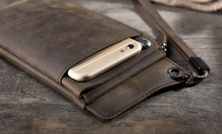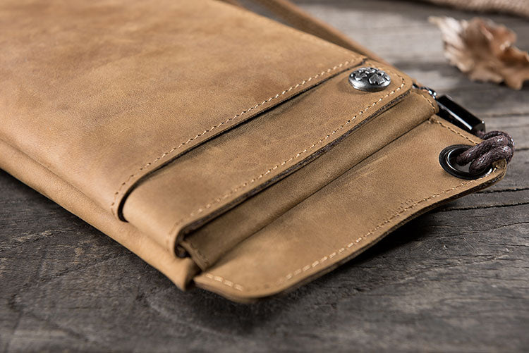 Design: Handmade Leather Mens Cool Long Chain Wallet Phone Biker Trucker Wristlet Wallet