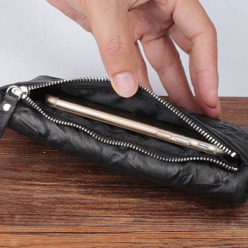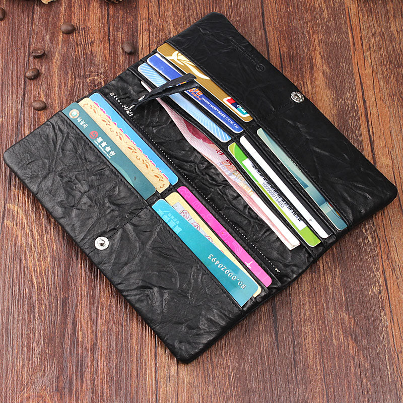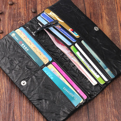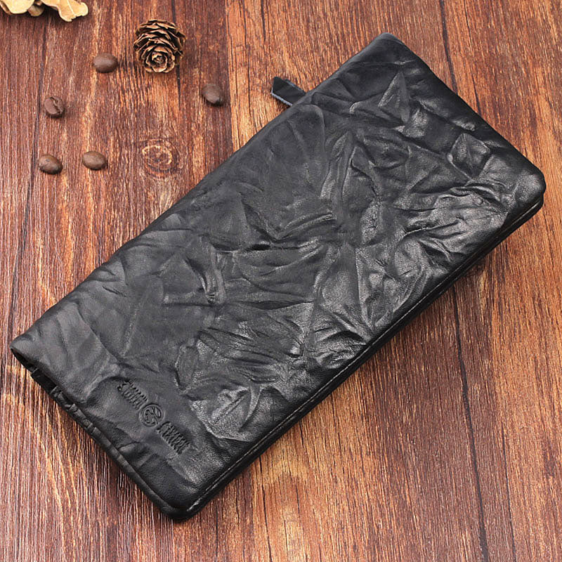 Design: Handmade Leather Mens Cool Long Leather Wallet Zipper Clutch Wallet for Men
