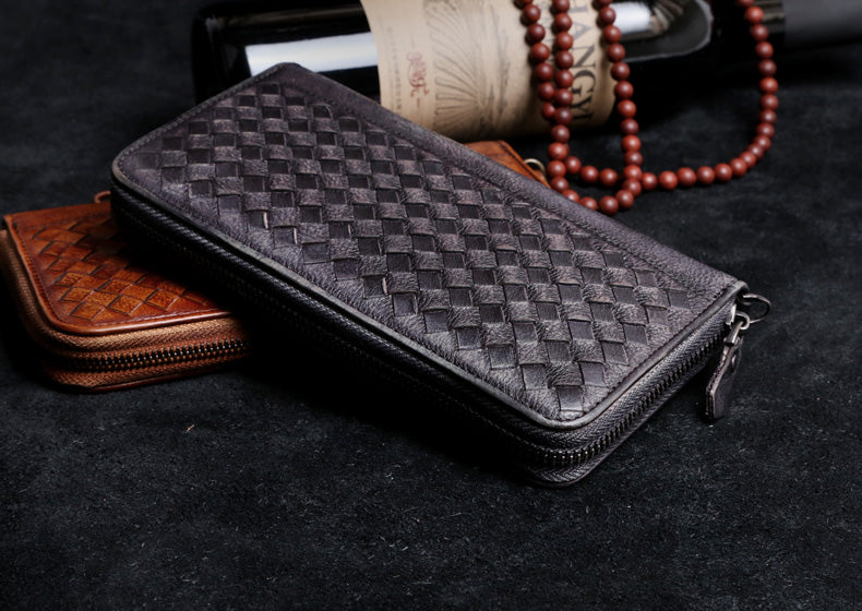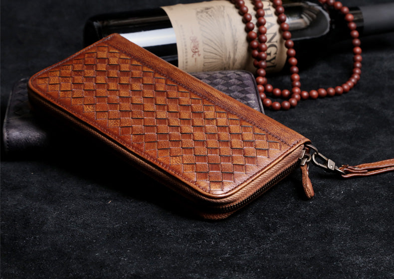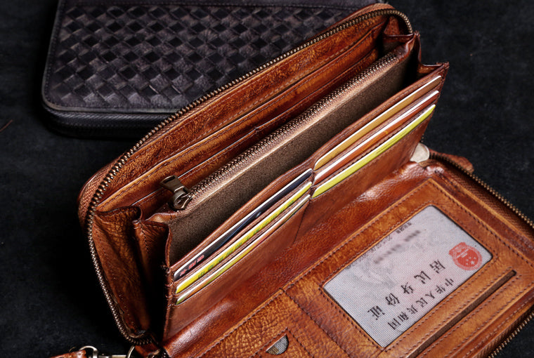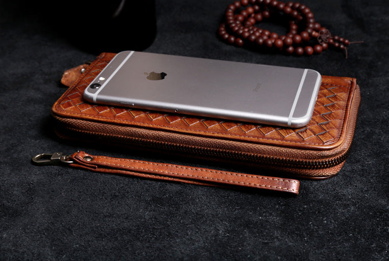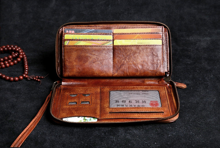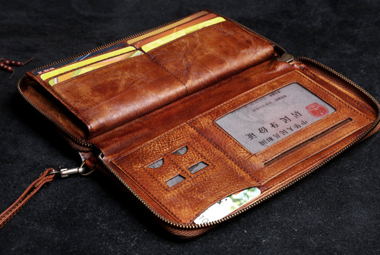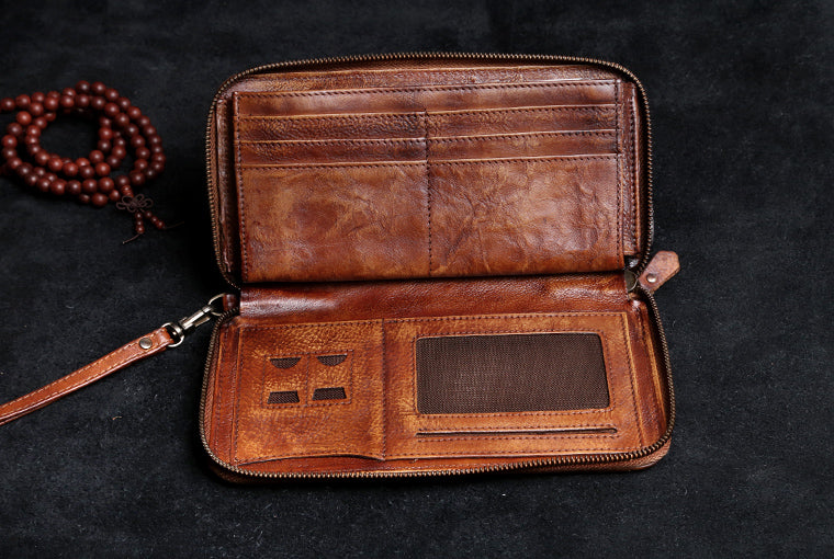 Design: Handmade Leather Mens Cool Long Leather Wallet Card Wallet Clutch Wristlet Wallet for Men