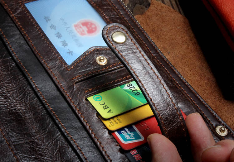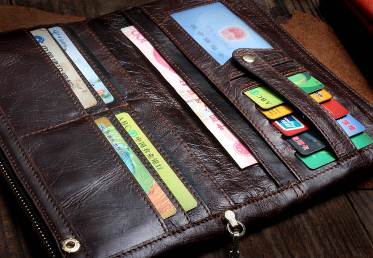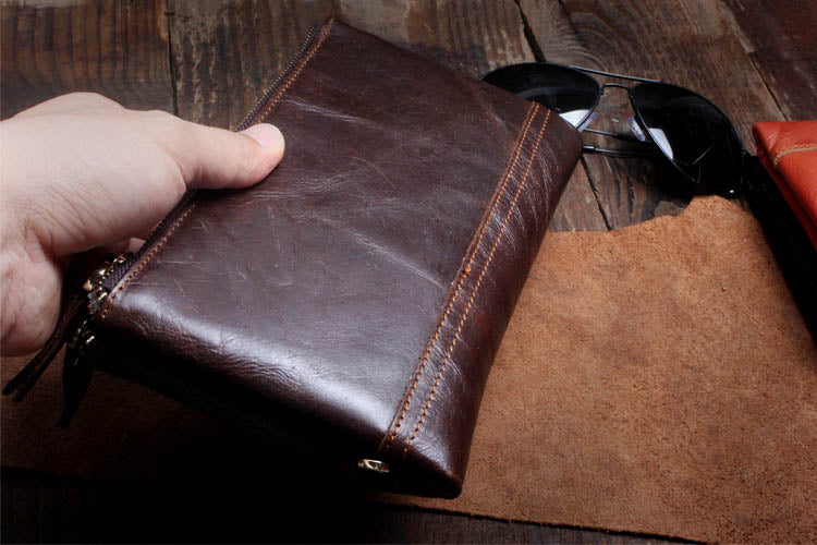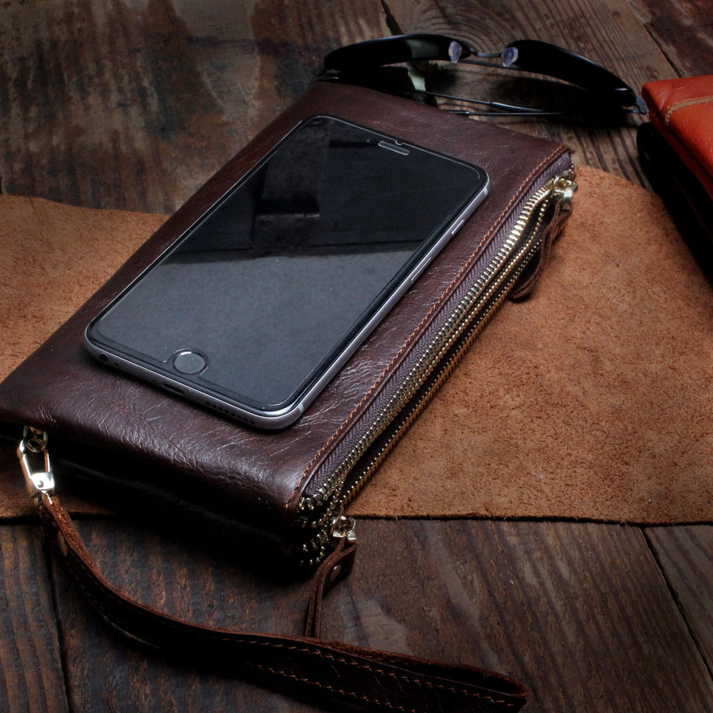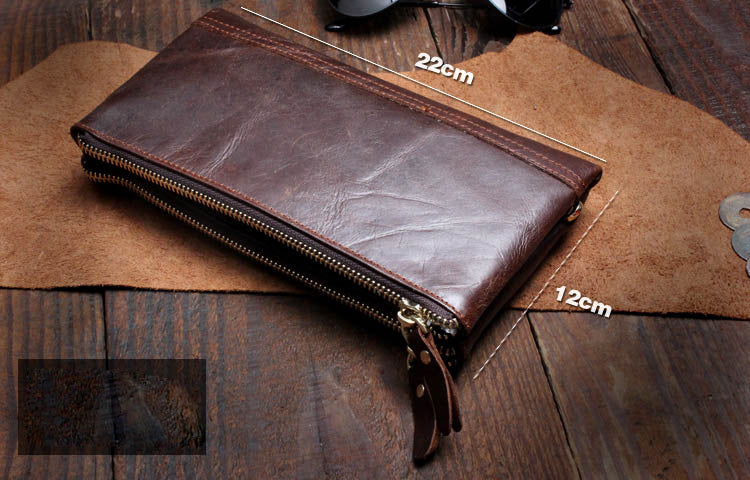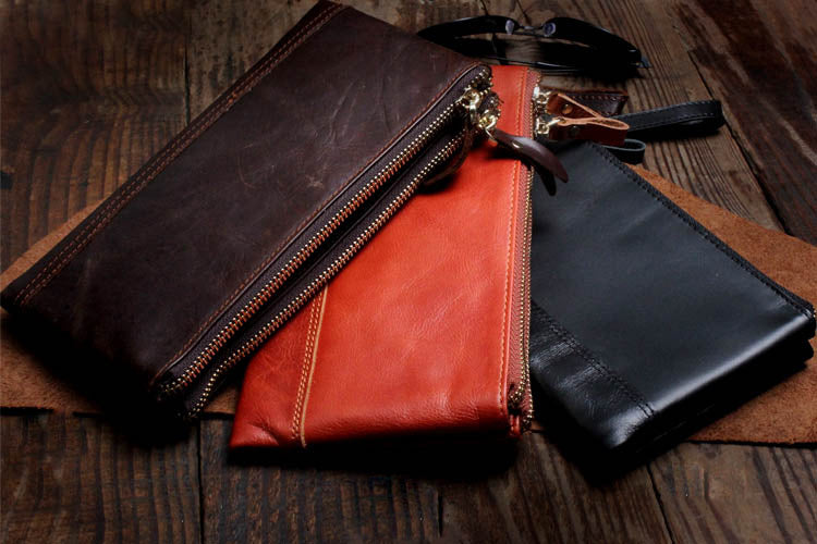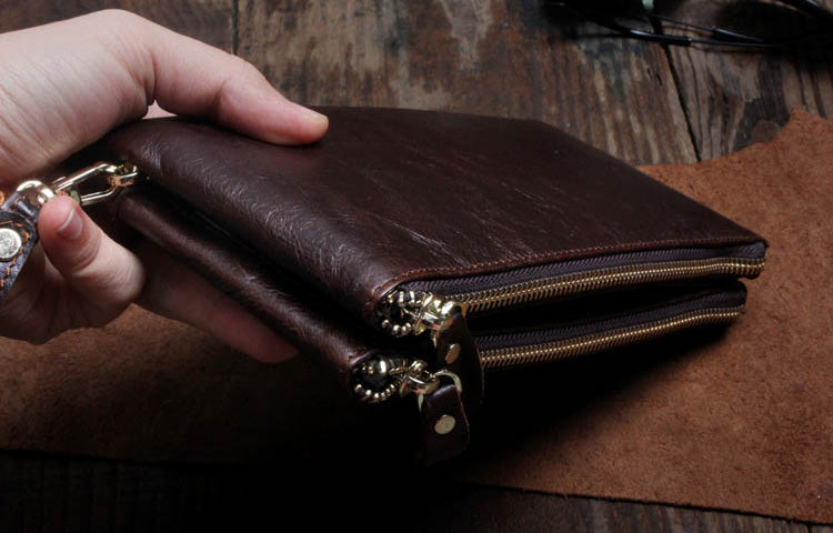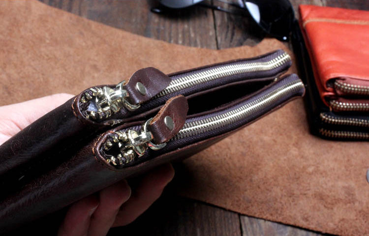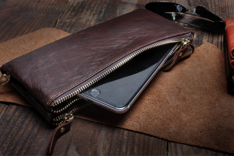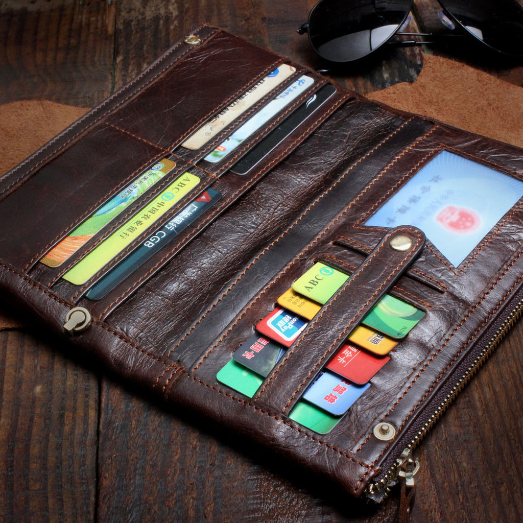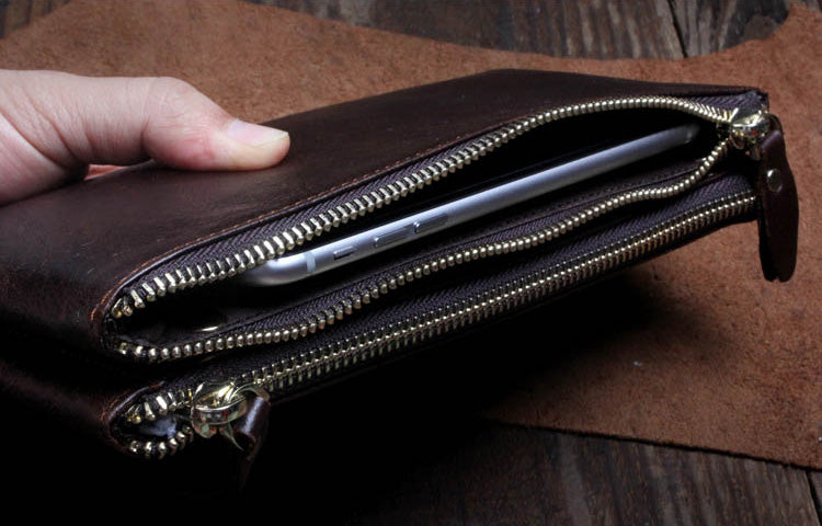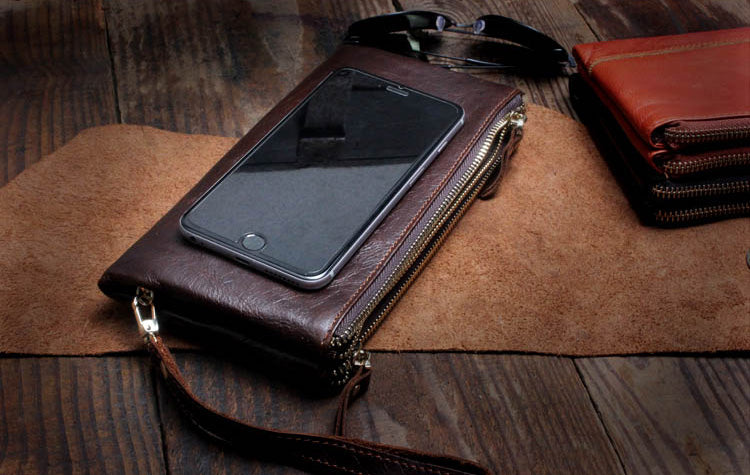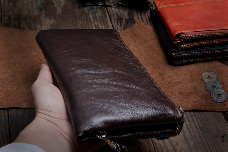 Design: Handmade Leather Mens Cool Long Leather Wallet Slim Zipper Clutch Wristlet Wallet for Men