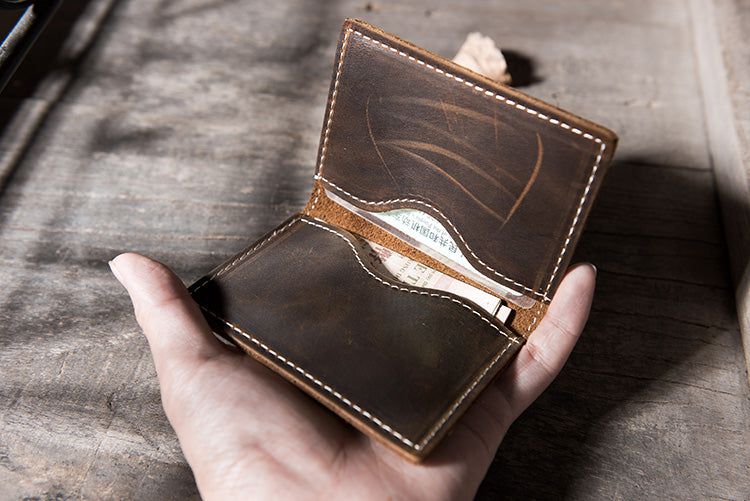 Design: Handmade Leather Mens Cool billfold Wallet Card Holder Small Card Slim Wallets for Men