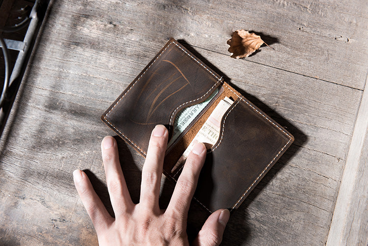 Style: Handmade Leather Mens Cool billfold Wallet Card Holder Small Card Slim Wallets for Men