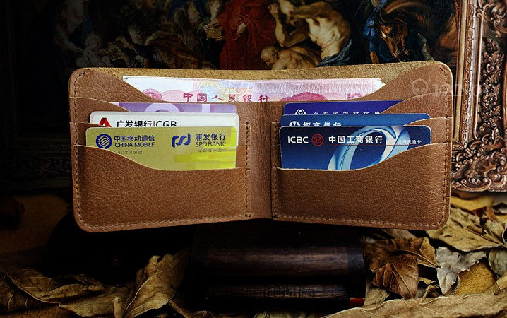 Style: Handmade Leather Mens Cool Slim Leather Wallet Men billfold Wallets Bifold for Men
