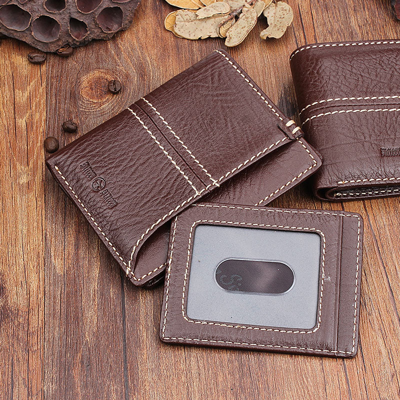 Style: Genuine Leather Mens Cool Slim Leather Wallet Men Small Wallets Bifold for Men