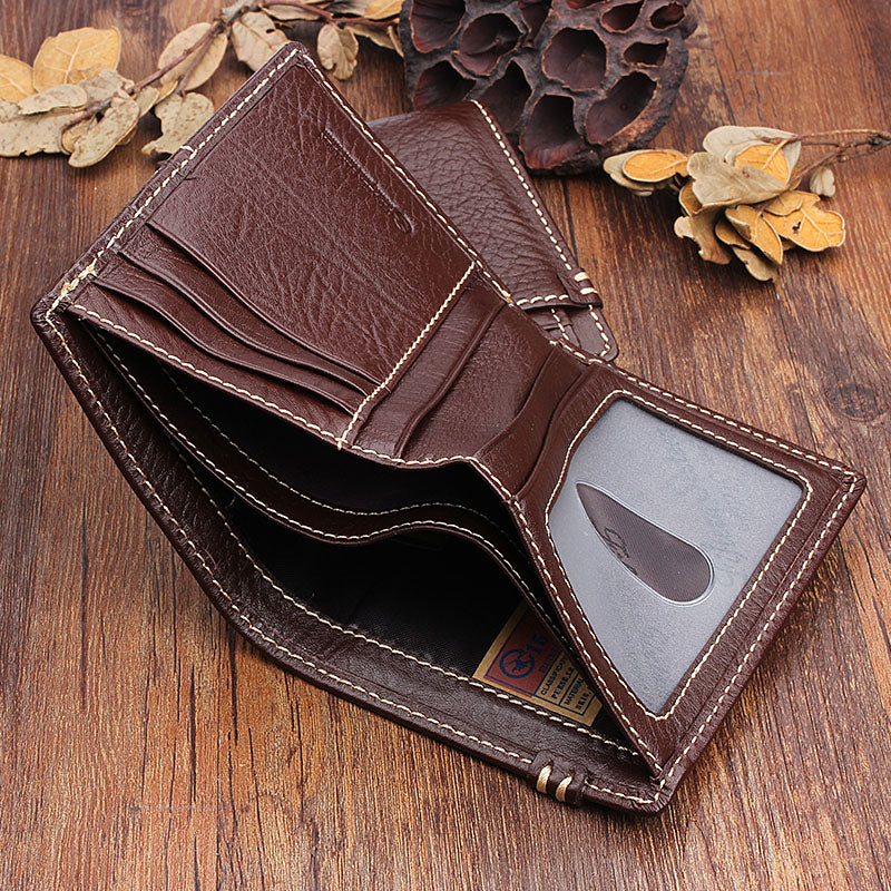 Design: Handmade Leather Mens Cool Slim Leather Wallet Men Small Wallets Bifold for Men