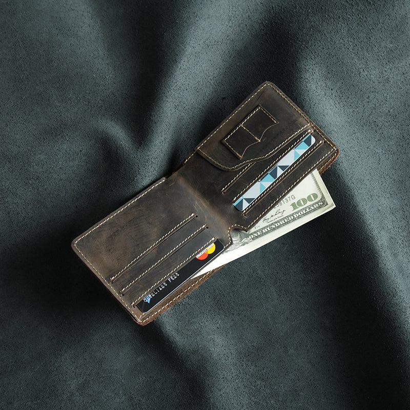 Style: Handmade Leather Mens Cool Slim Leather Wallet Men Small Wallets Bifold for Men