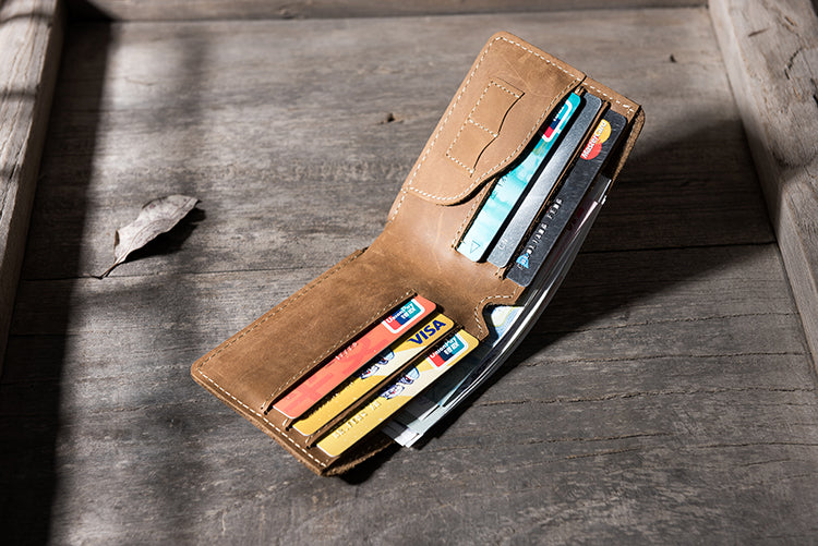 Design: Handmade Leather Mens Cool Slim Leather Wallet Men Small Wallets Bifold for Men