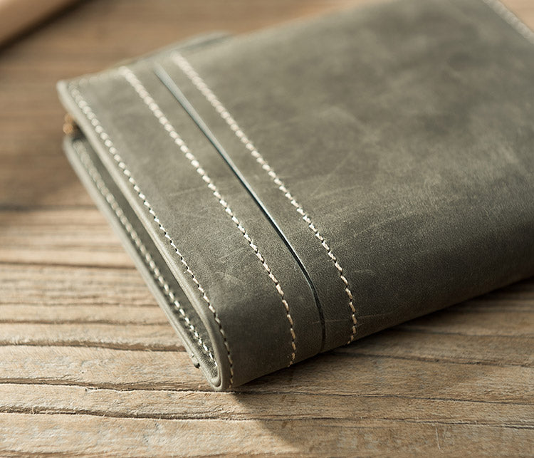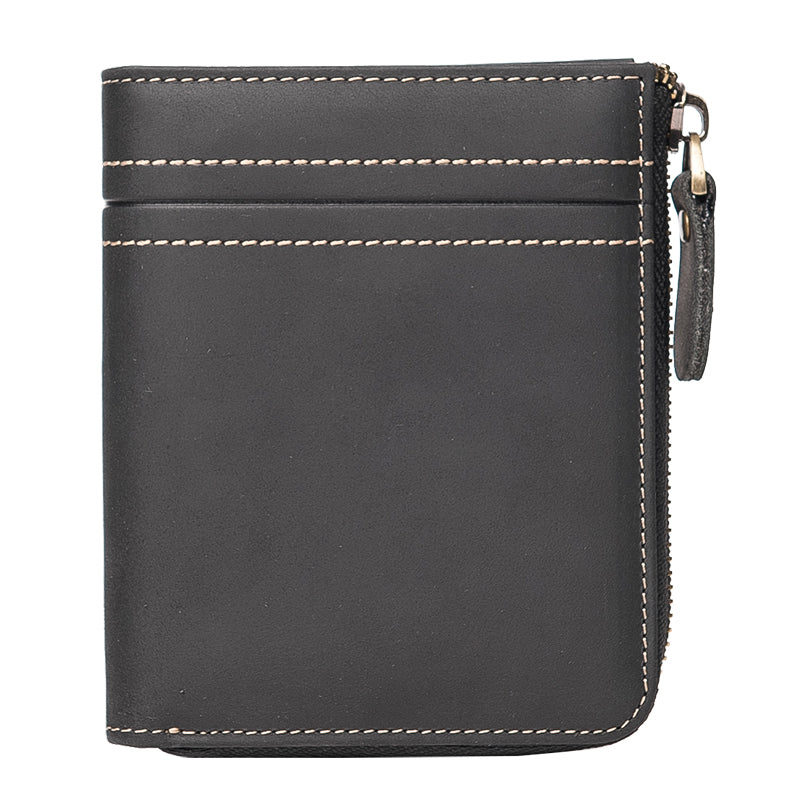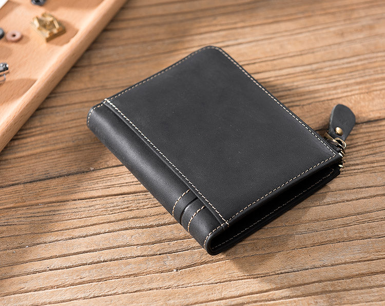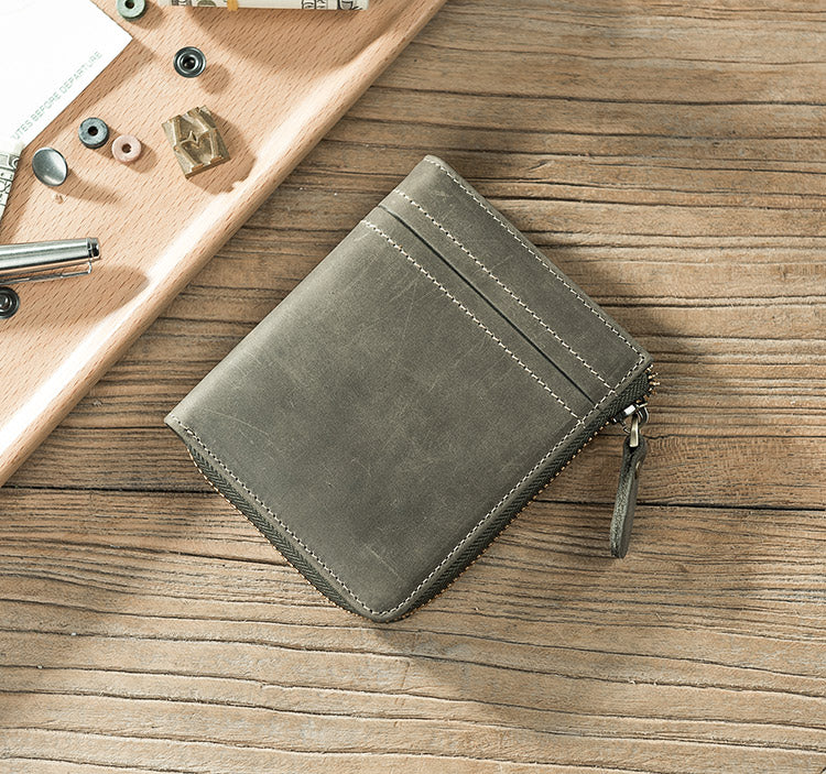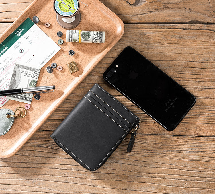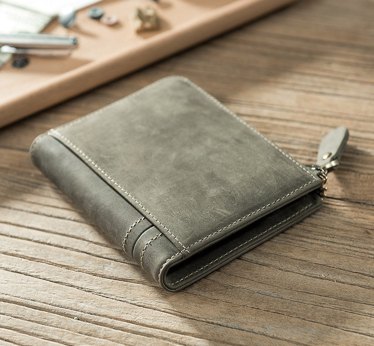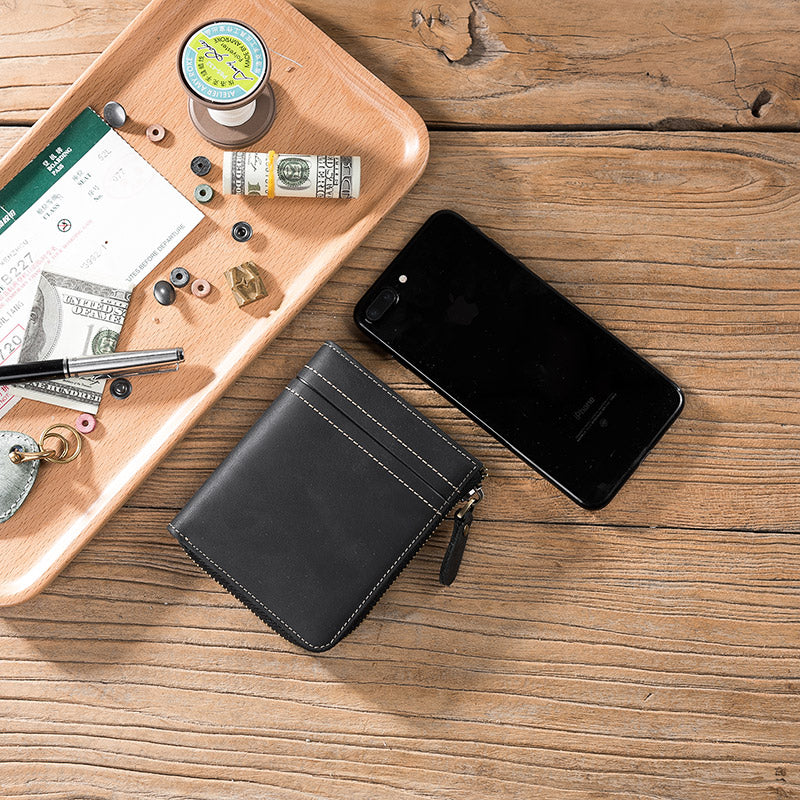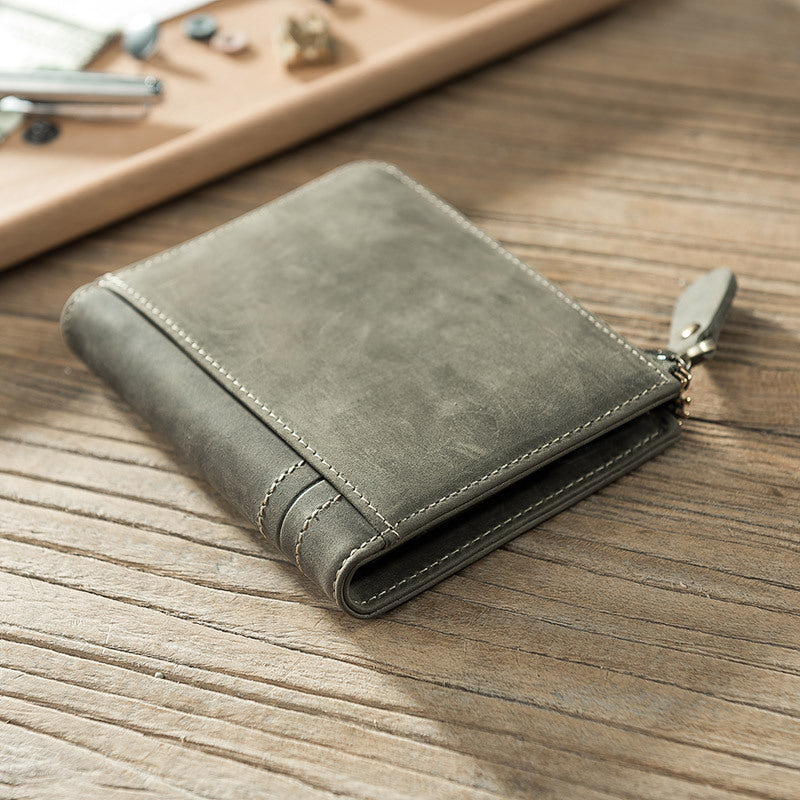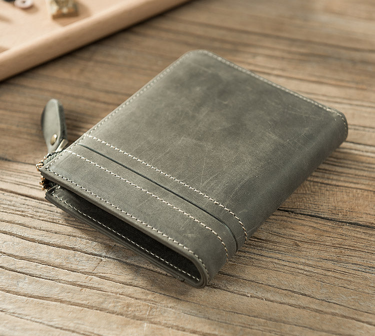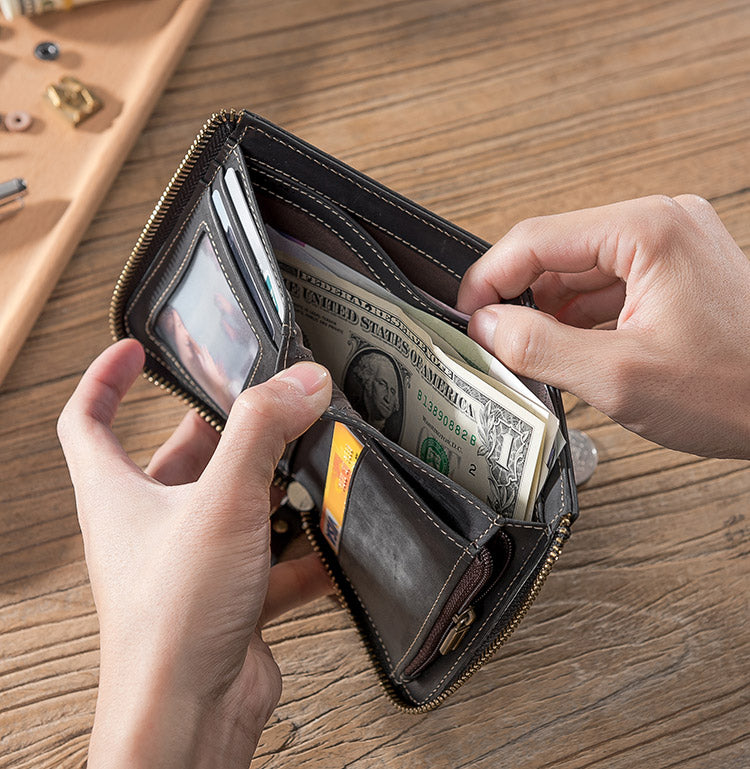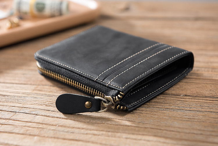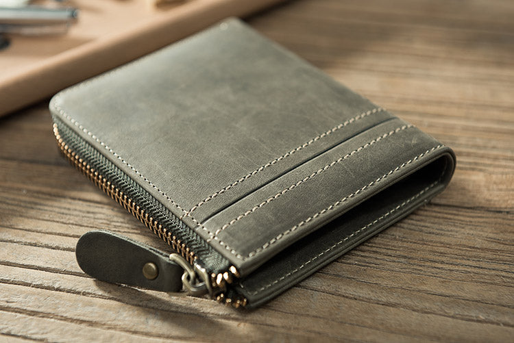 Style: Handmade Leather Mens Cool Slim Leather Zipper Wallet Men Small Wallets Bifold for Men