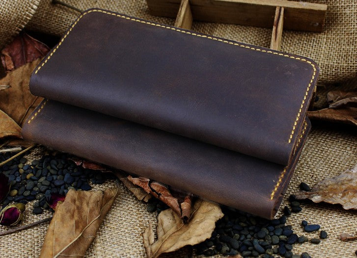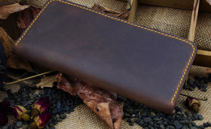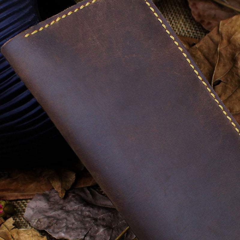 Design: Handmade Leather Floral Mens Cool Travel Long Wallet Card Holder Card Slim Clutch Wallets for Men