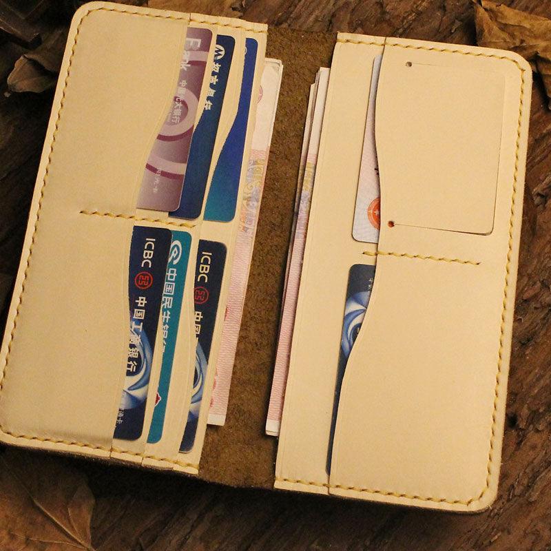 Design: Handmade Leather Floral Mens Cool Travel Long Wallet Card Holder Card Slim Clutch Wallets for Men