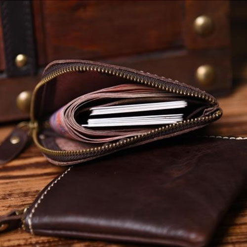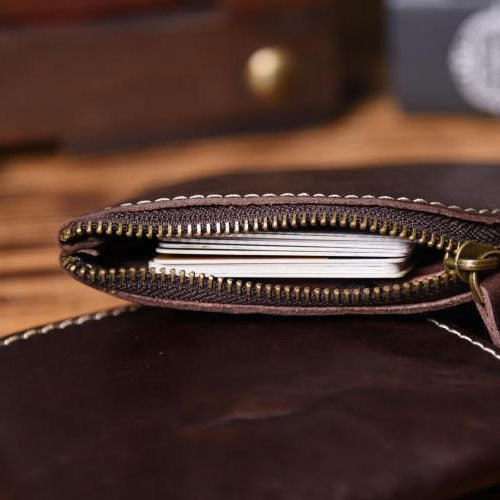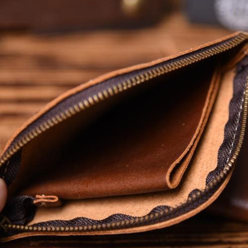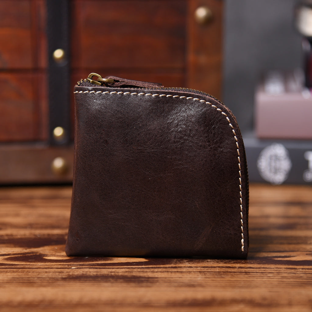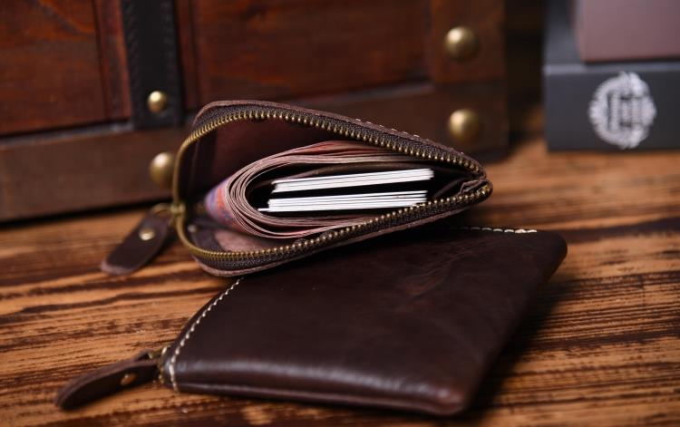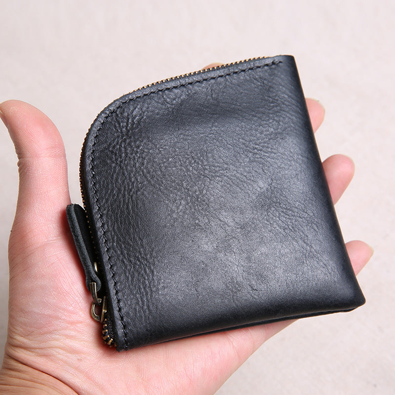 Design: Leather Mens Cool Mens Wallets with Zipper L Shape Zipper Front Pocket Wallet for Men