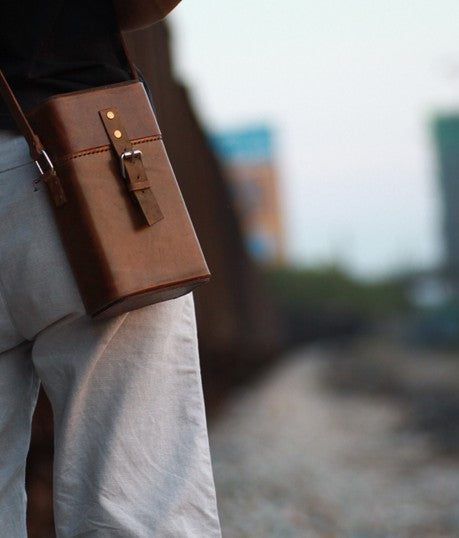 Style: Handmade Leather Mens Small Box Bag Shoulder Bag Messenger Bag for Men