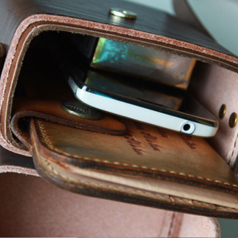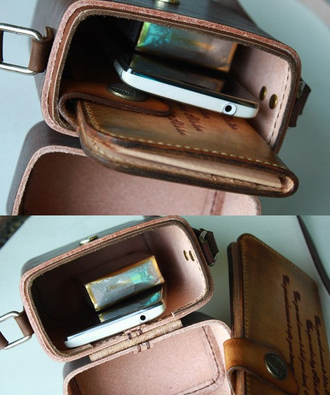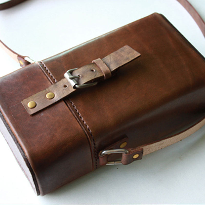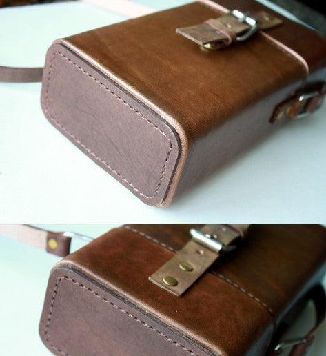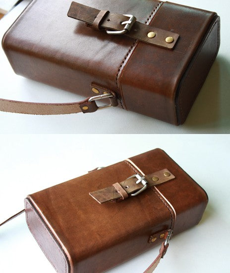 Design: Handmade Leather Mens Small Box Bag Shoulder Bag Messenger Bag for Men