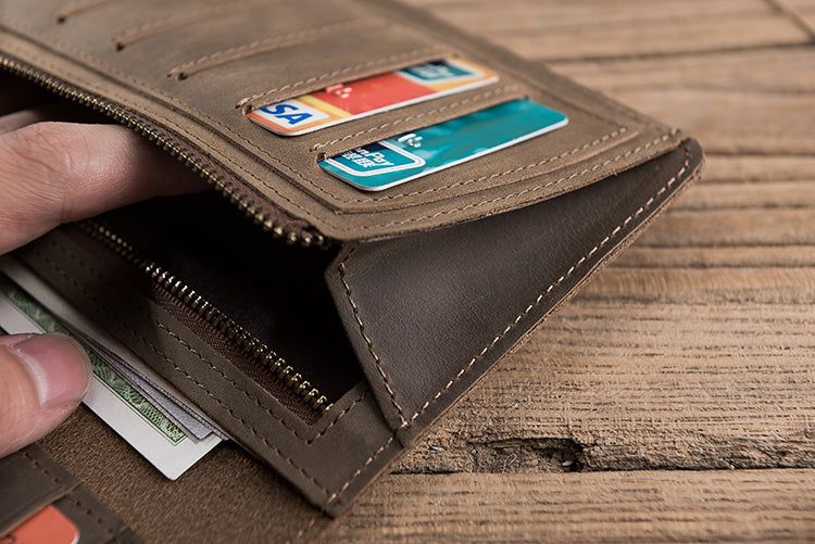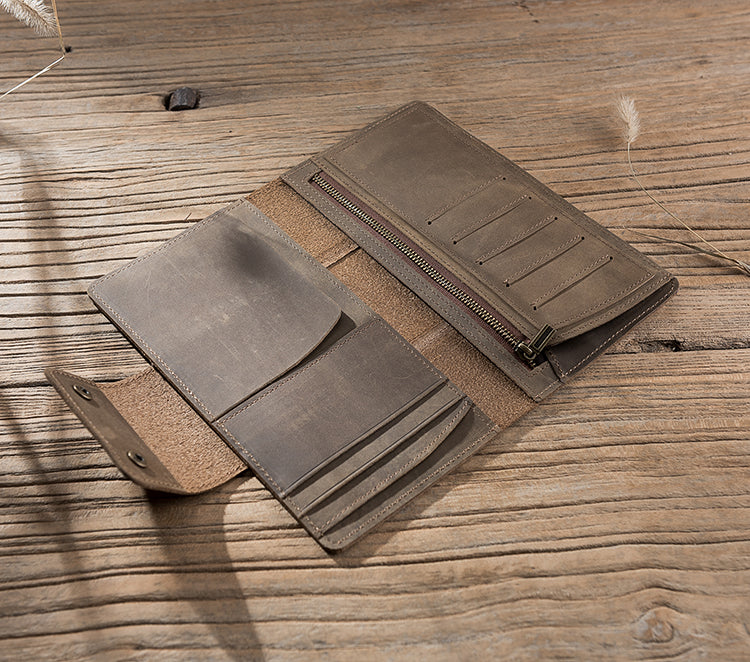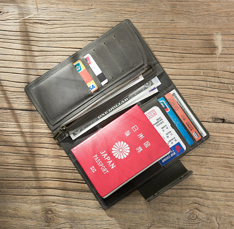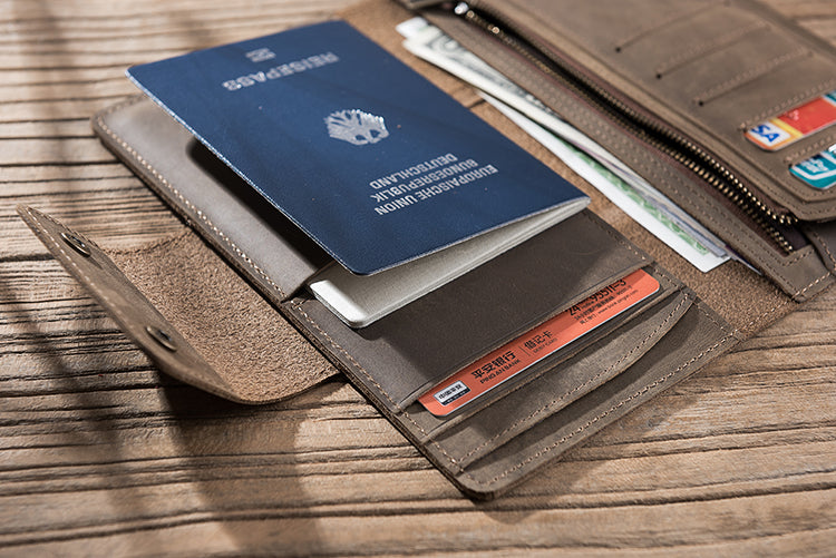Style: Handmade Leather Mens Travel Wallet Passport Leather Wallet Long Phone Wallets for Men