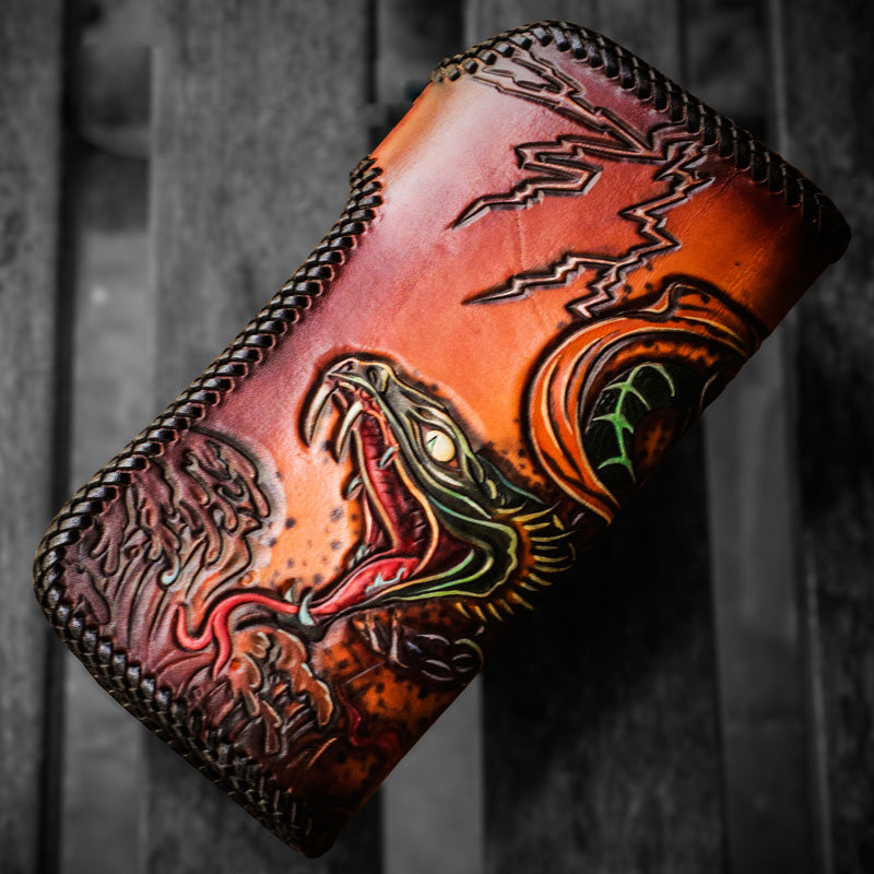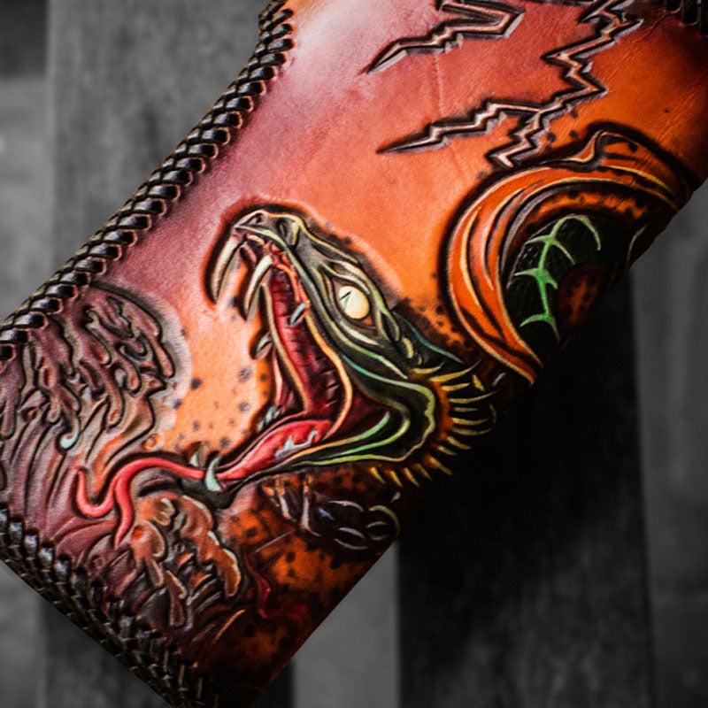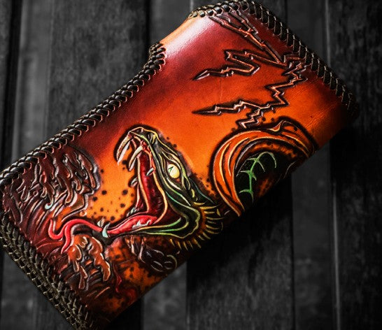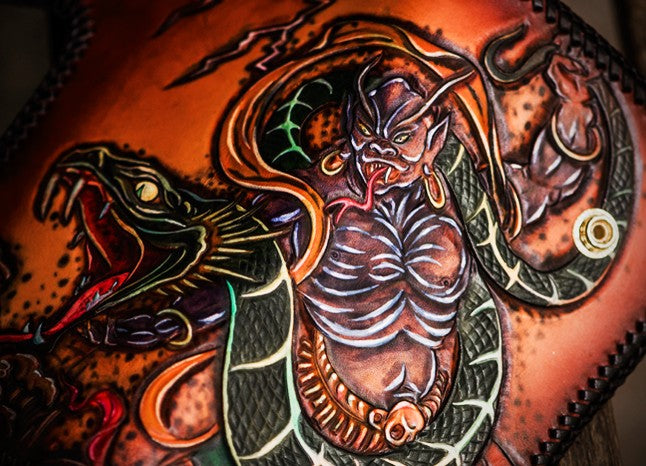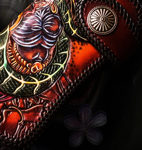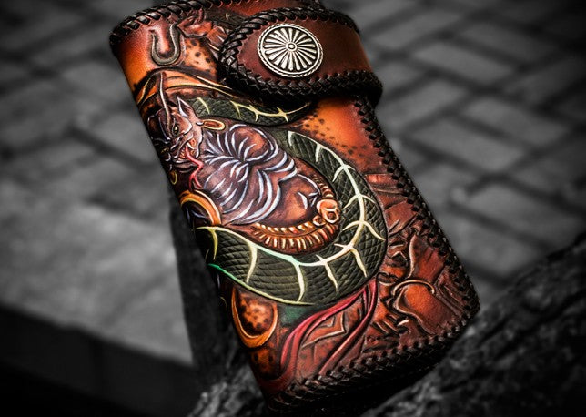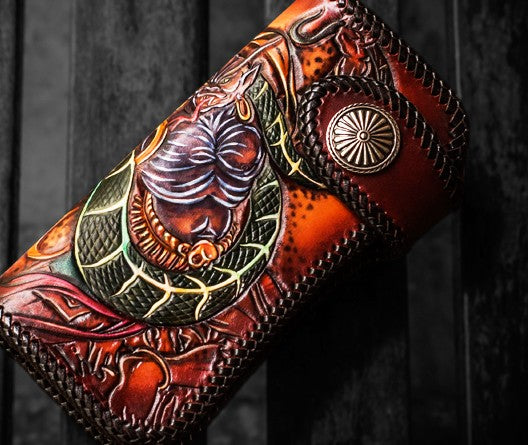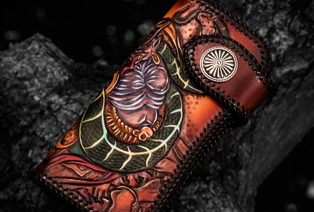 Design: Handmade Leather Prajna Ghost Mens Chain Biker Wallet Cool Leather Wallet With Chain Wallets for Men