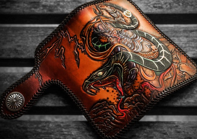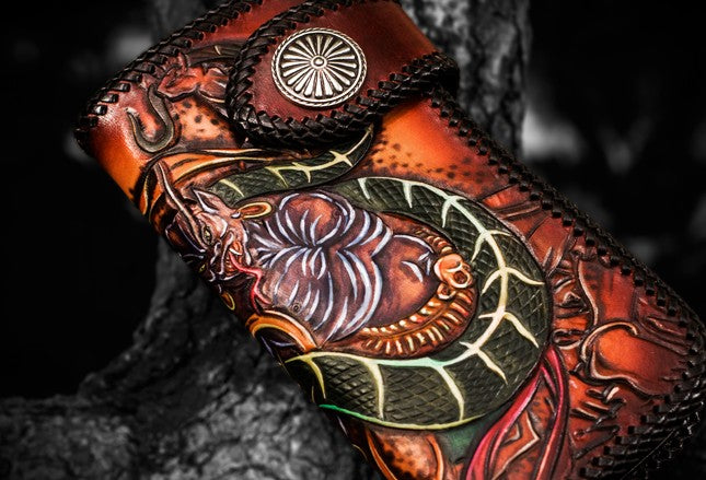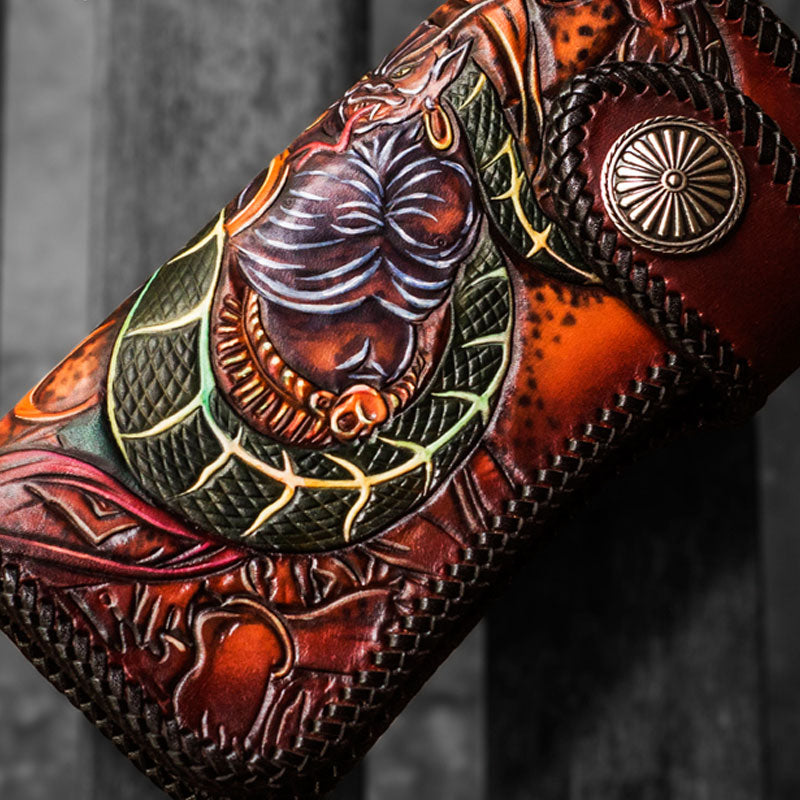 Style: Handmade Leather Prajna Ghost Mens Chain Biker Wallet Cool Leather Wallet With Chain Wallets for Men