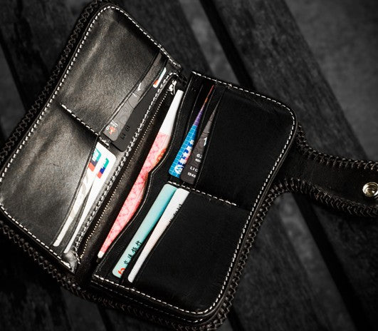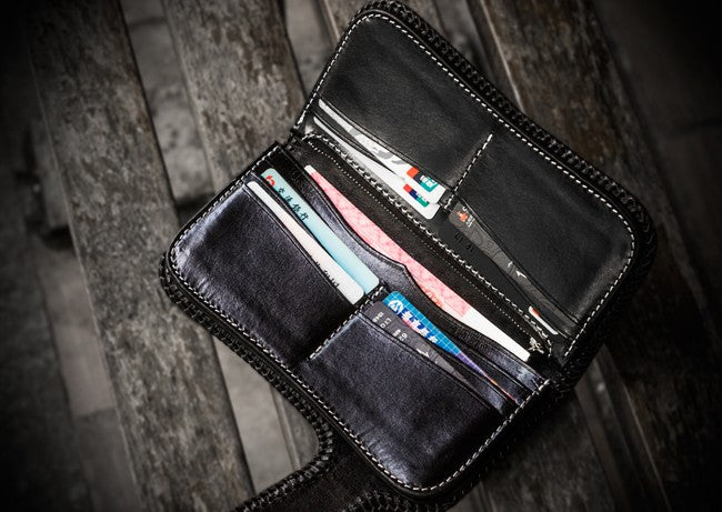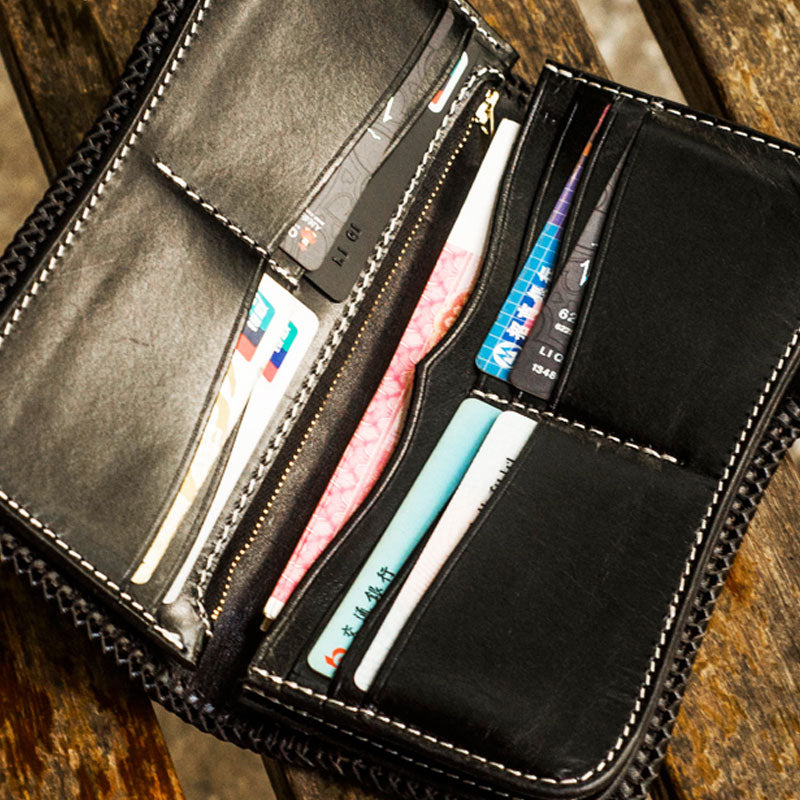 Slots: 2 full size bill slot, 8 card holders, 1 zipper slot