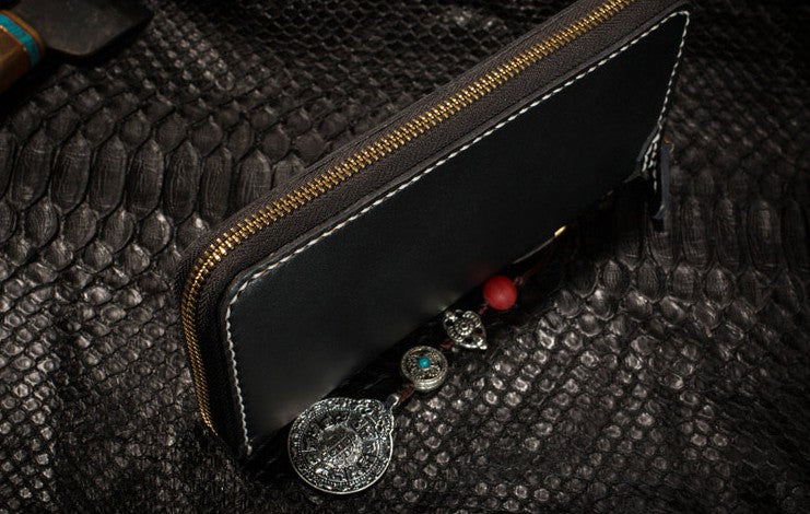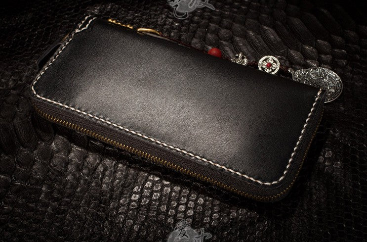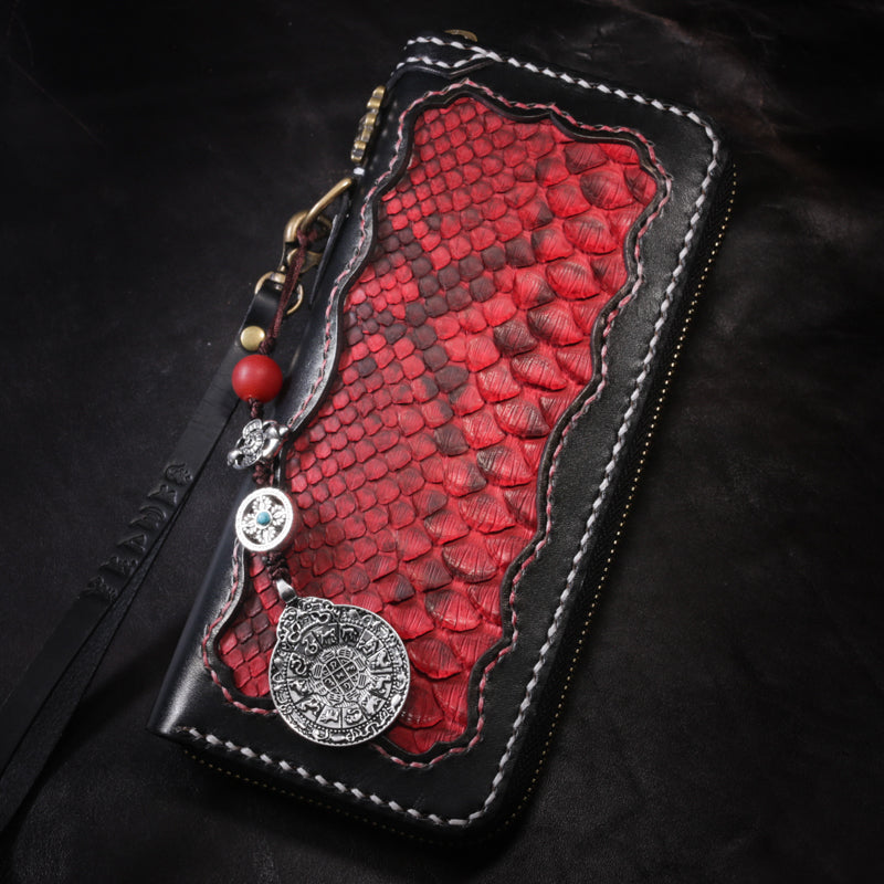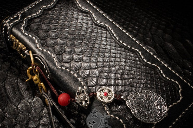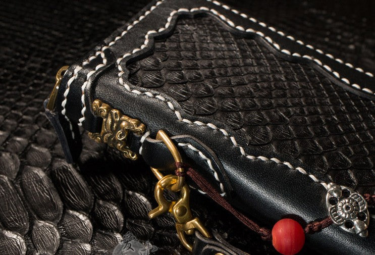 Style: Handmade Leather Python Skin Mens Chain Biker Wallet Cool Leather Wallet Long Phone Wallets for Men