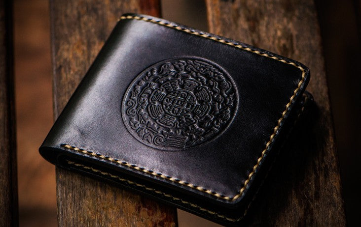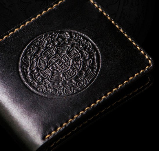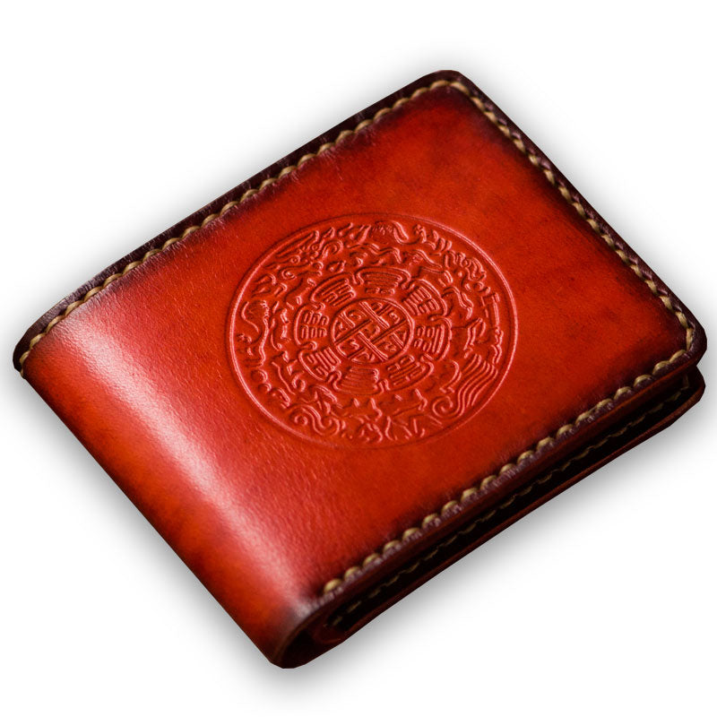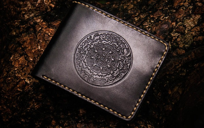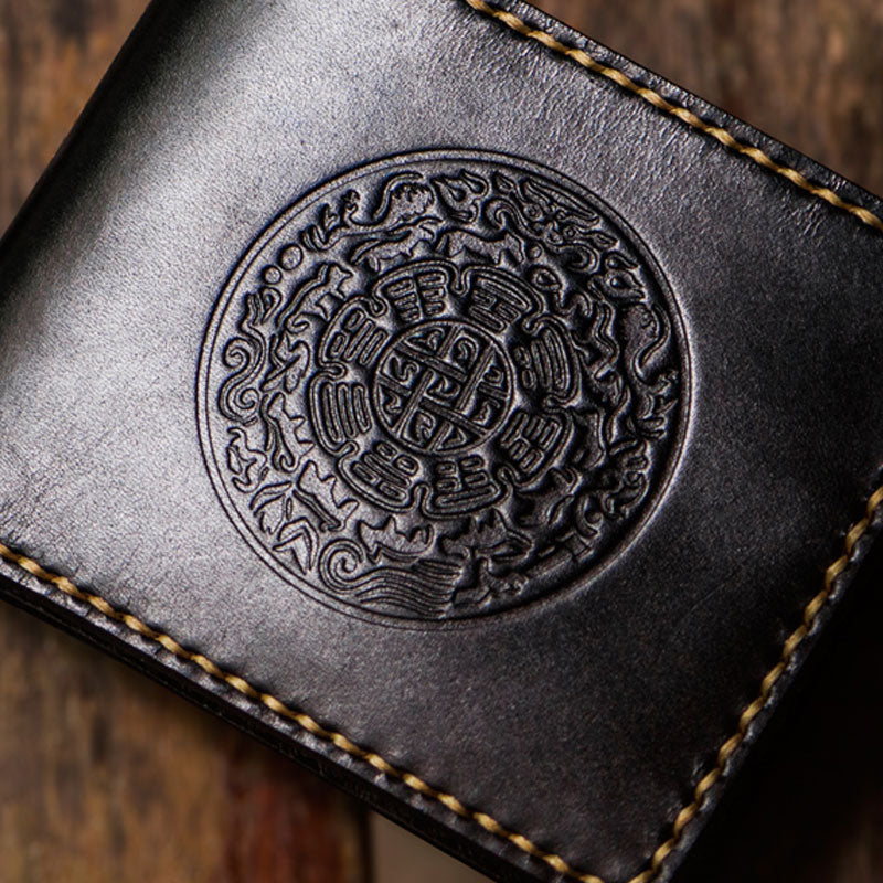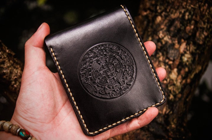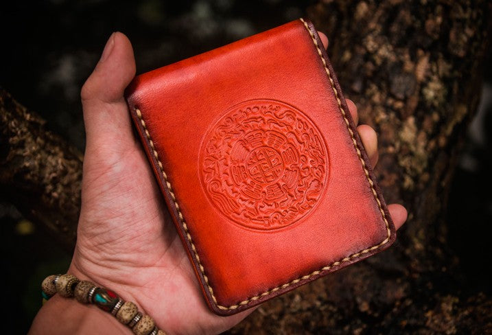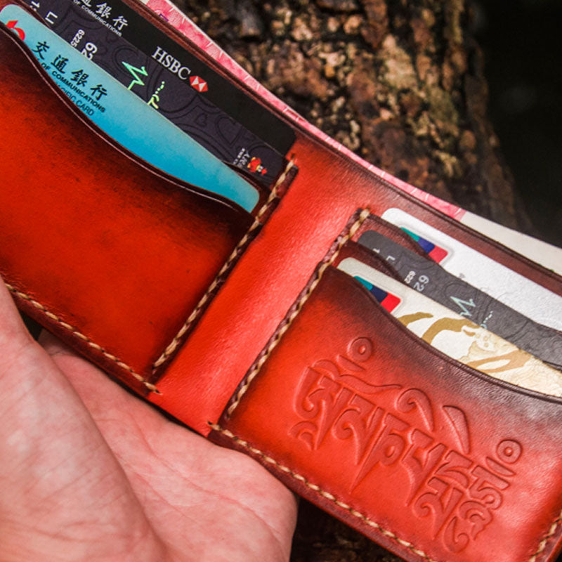 Design: Handmade Leather Tibetan Tooled Mens billfold Wallet Cool Leather Wallet Slim Wallet for Men