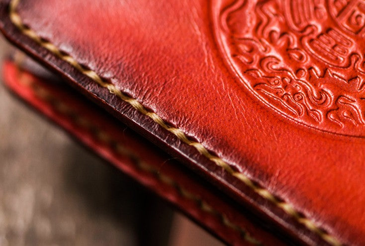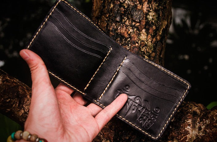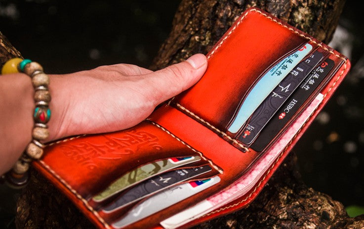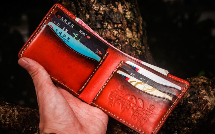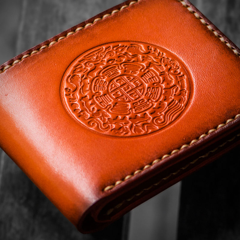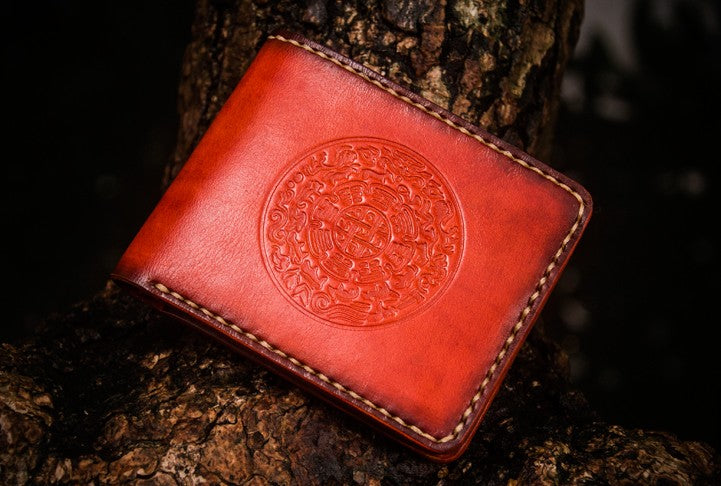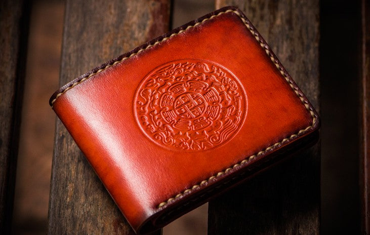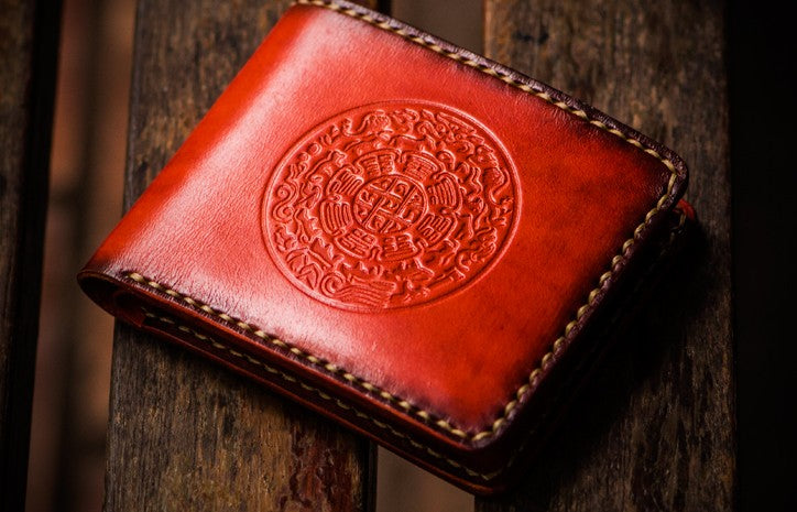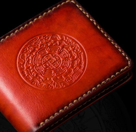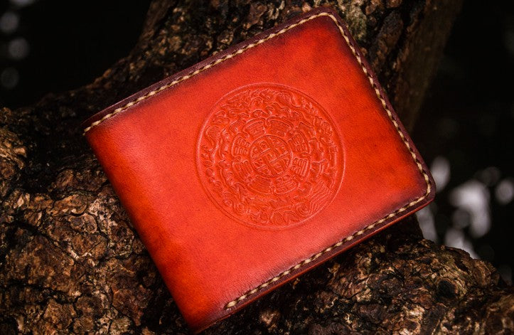 Design: Handmade Leather Tibetan Tooled Mens billfold Wallet Cool Leather Wallet Slim Wallet for Men