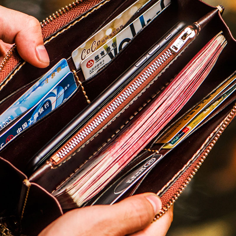 Slots: 2 full size bill slot, 8 card holders, 1 zipper slot, 2 phone slot