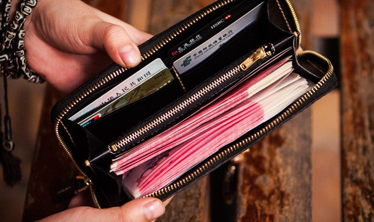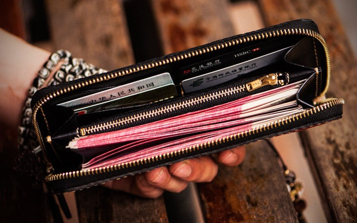 Slots: 2 full size bill slot, 8 card holders, 1 zipper slot