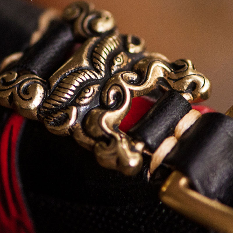 Style: Handmade Leather Tooled Chinese Monster Mens Chain Biker Wallet Cool Leather Wallet Zipper Long Phone Wallets for Men