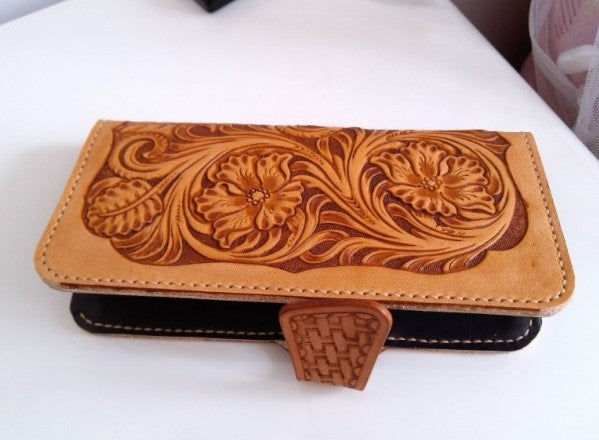 Design: Handmade Leather Mens Long Wallet Vintage Cool Long Wallet for Men