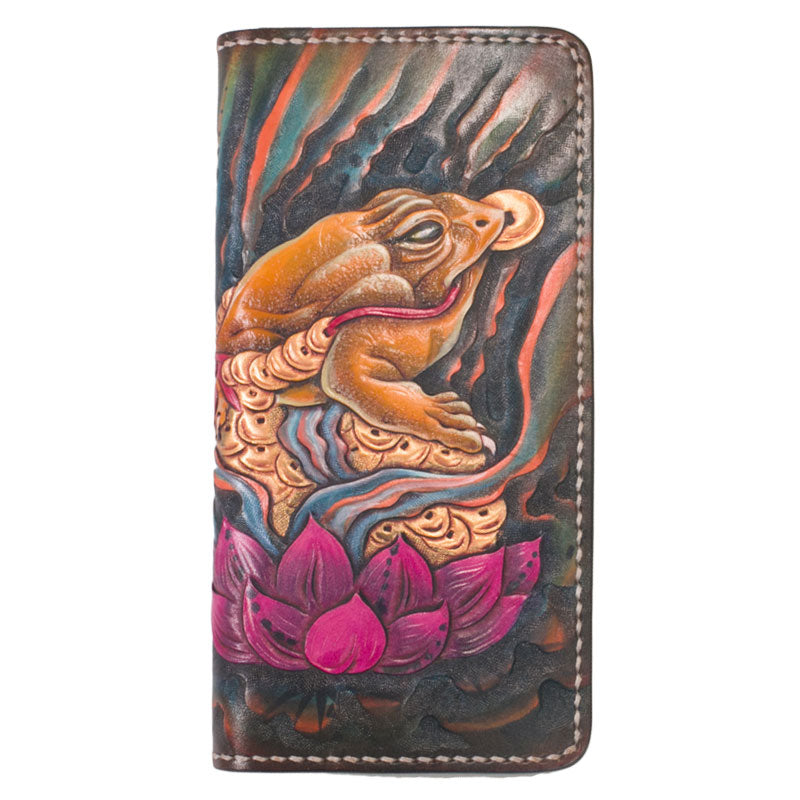 Design: Handmade Leather Tooled Golden Toad Mens Chain Biker Wallet Cool Leather Wallet Long Phone Wallets for Men