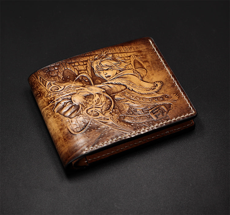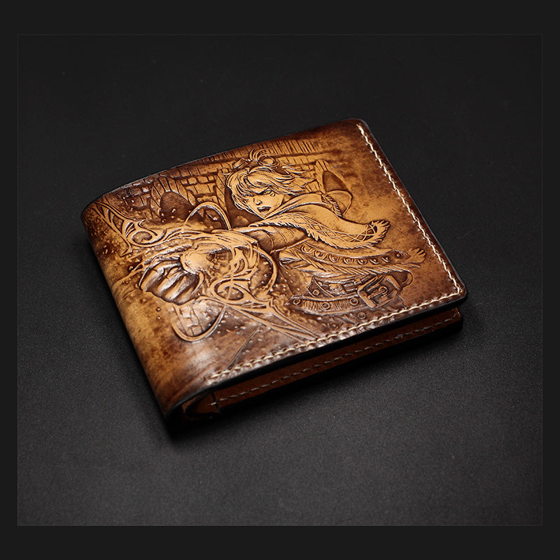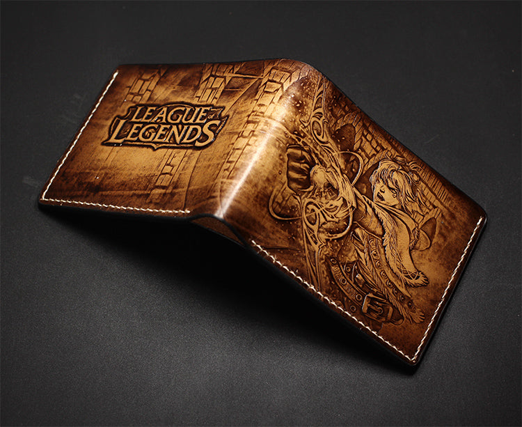 Design: Handmade Leather Tooled League of Legends LOL Ezreal the Prodigal Explorer Mens billfold Wallet Cool Leather Wallet Slim Wallet for Men