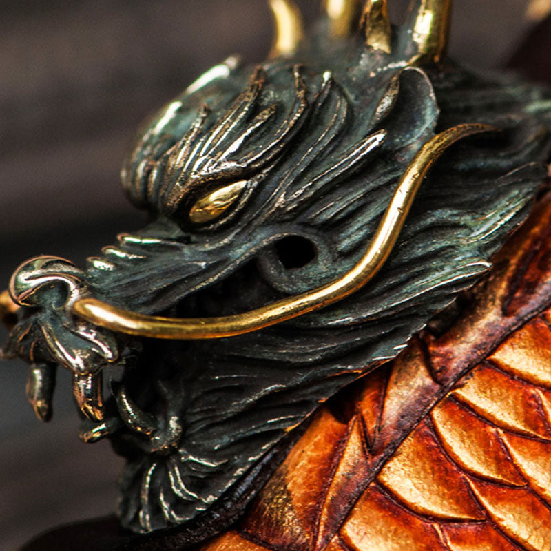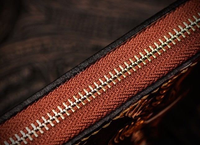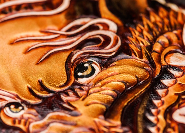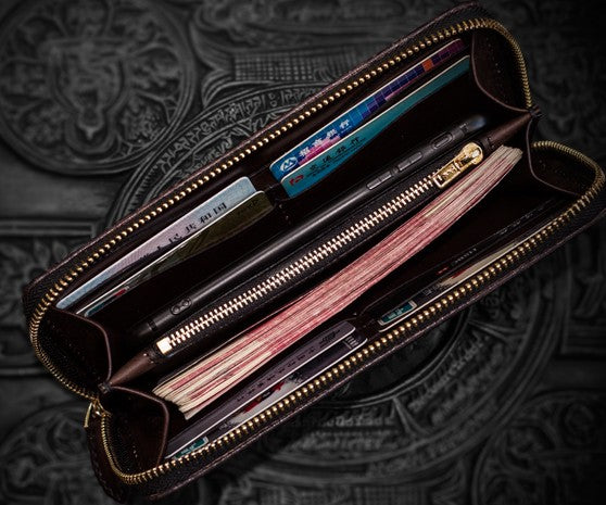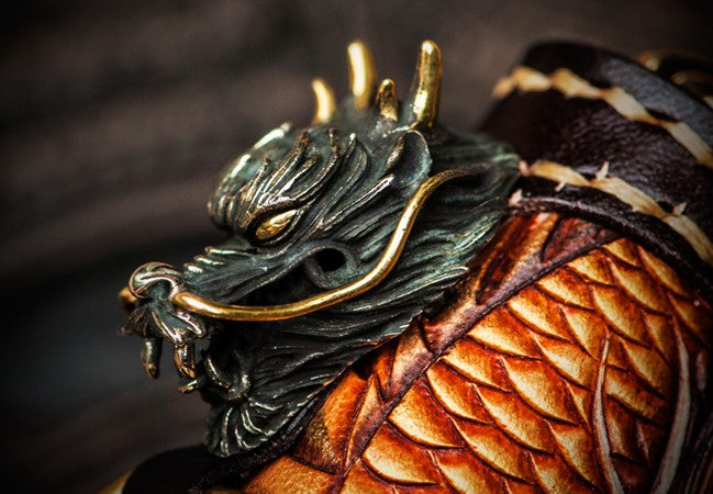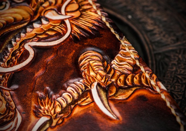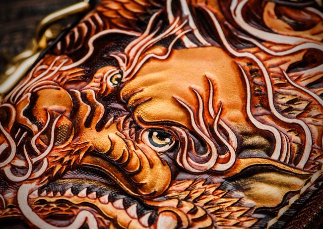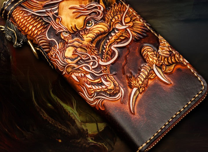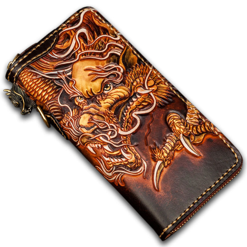 Style: Handmade Leather Tooled Long Chinese Dragon Mens Chain Biker Wallet Cool Leather Wallet With Chain Wallets for Men