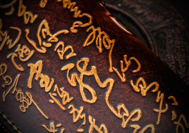 Design: Handmade Leather Tooled Long Chinese Dragon Mens Chain Biker Wallet Cool Leather Wallet With Chain Wallets for Men