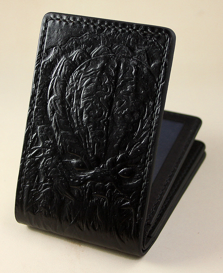 Design: Handmade Leather Tooled Predator License Wallet Mens Card billfold Wallet Cool Leather Wallet Slim Wallet for Men