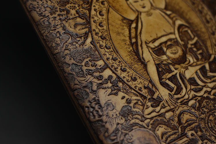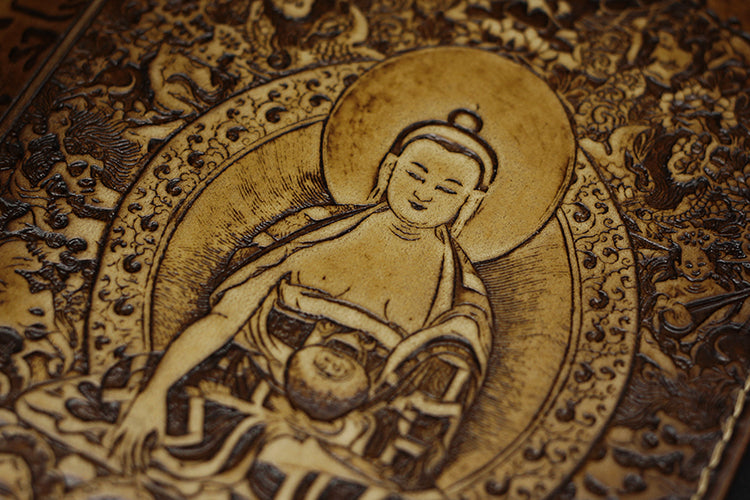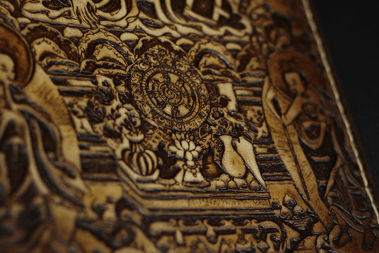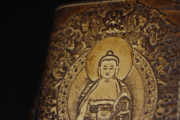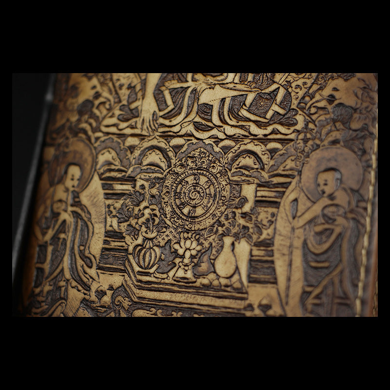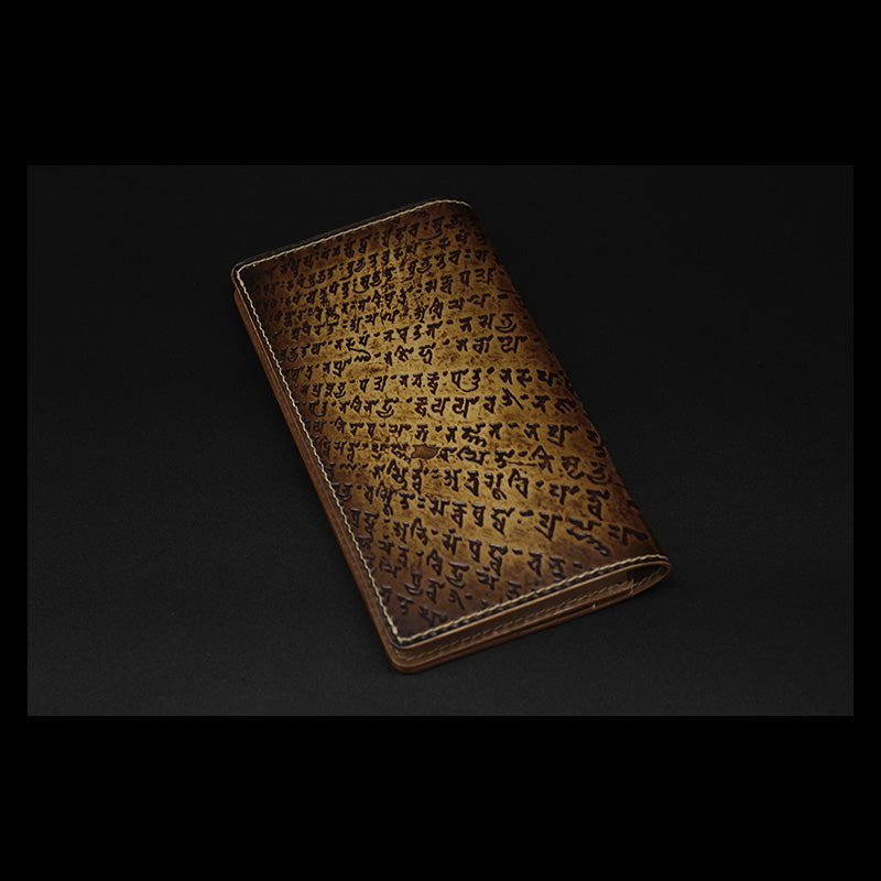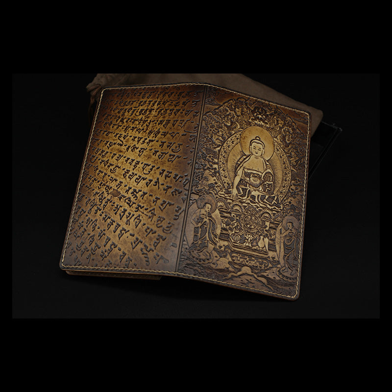 Handmade Leather Tooled Shakya Muni Buddhism Mens Long Wallet Cool Leather Wallet Clutch Wallet for Men