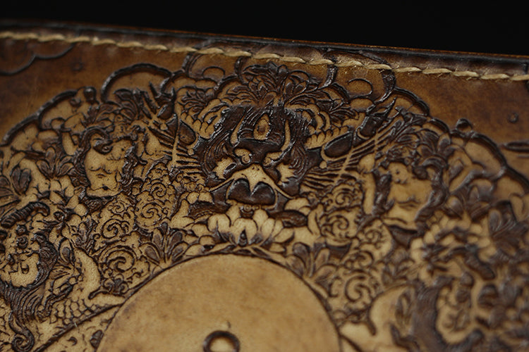 Style: Handmade Leather Tooled Shakya Muni Buddhism Mens Long Wallet Cool Leather Wallet Clutch Wallet for Men
