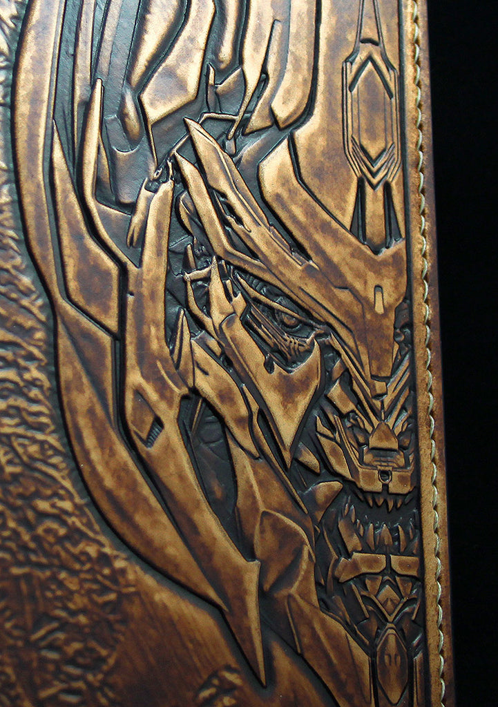 Design: Handmade Leather Tooled Transformers Megatron Mens Long Wallet Cool Leather Wallet Clutch Wallet for Men