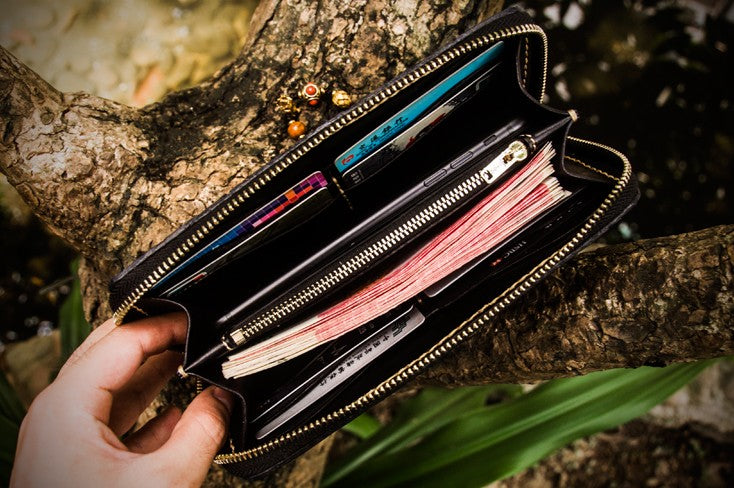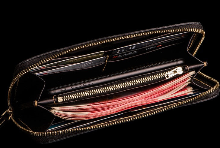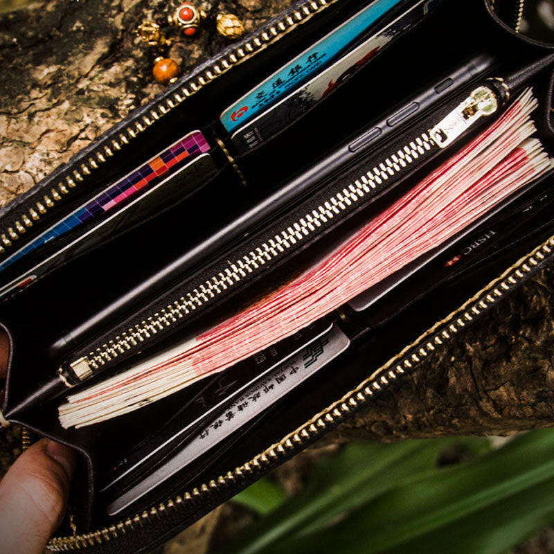 Slots: 2 full size bill slot, 8 card holders, 1 zipper slot