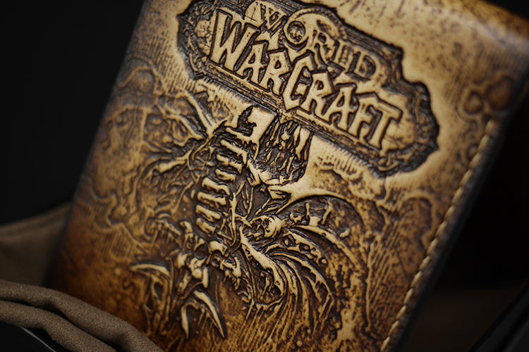 Design: Handmade Leather Tooled World of Warcraft Lich King Mens billfold Wallet Cool Leather Wallet Slim Wallet for Men