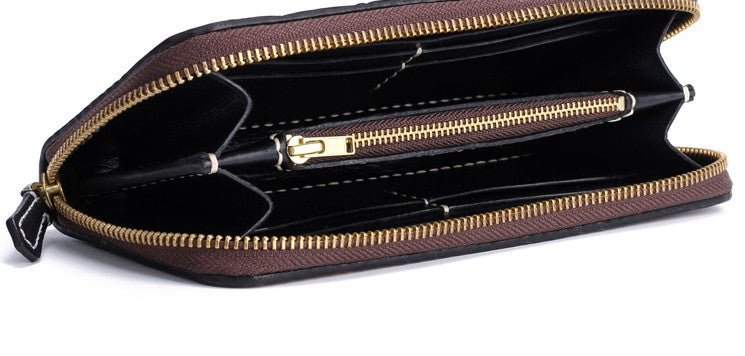 Slots: 2 full size bill slot, 12 card holders, 1 zipper slot