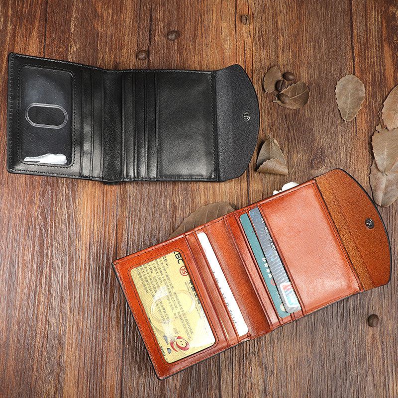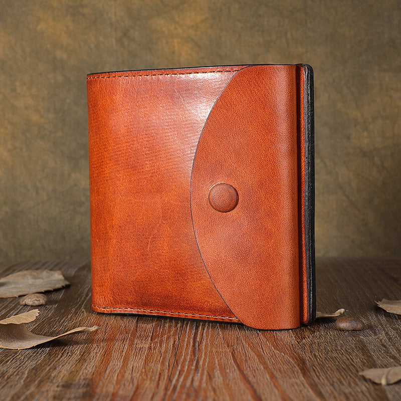 Style: Handmade Mens Cool Black billfold Leather Wallet Men Brown Card Wallets Trifold for Men