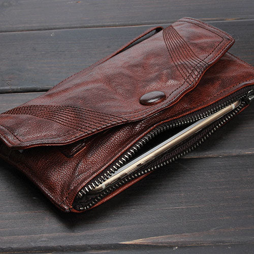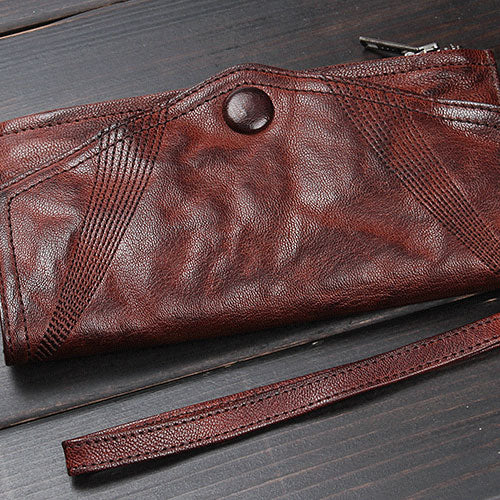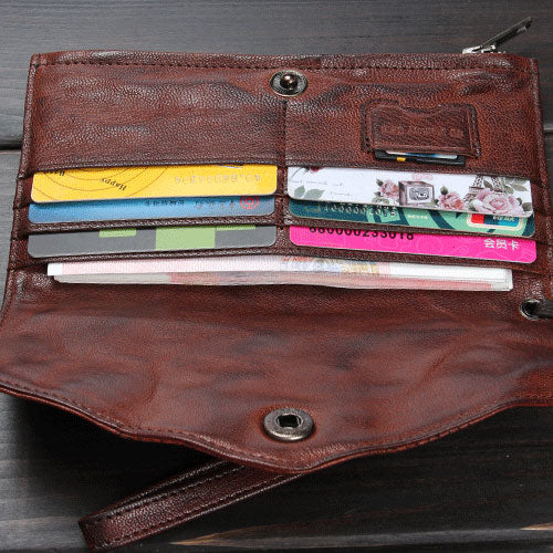 Design: Handmade Mens Cool Long Leather Chain Wallet Cards Biker Trucker Wristlet Wallet