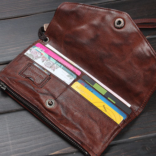 Style: Handmade Mens Cool Long Leather Chain Wallet Cards Biker Trucker Wristlet Wallet