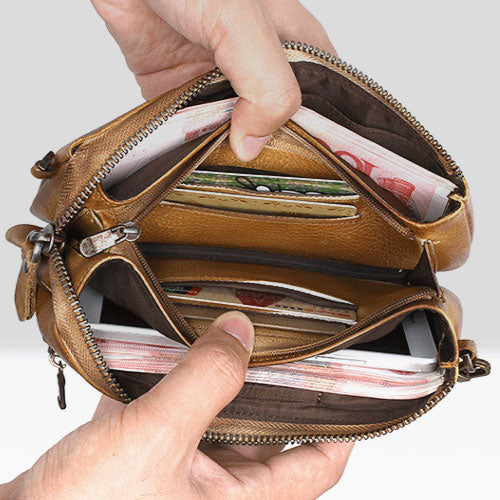 Slots: 2 full size bill slot, 8 card holders, 1 zipper slot